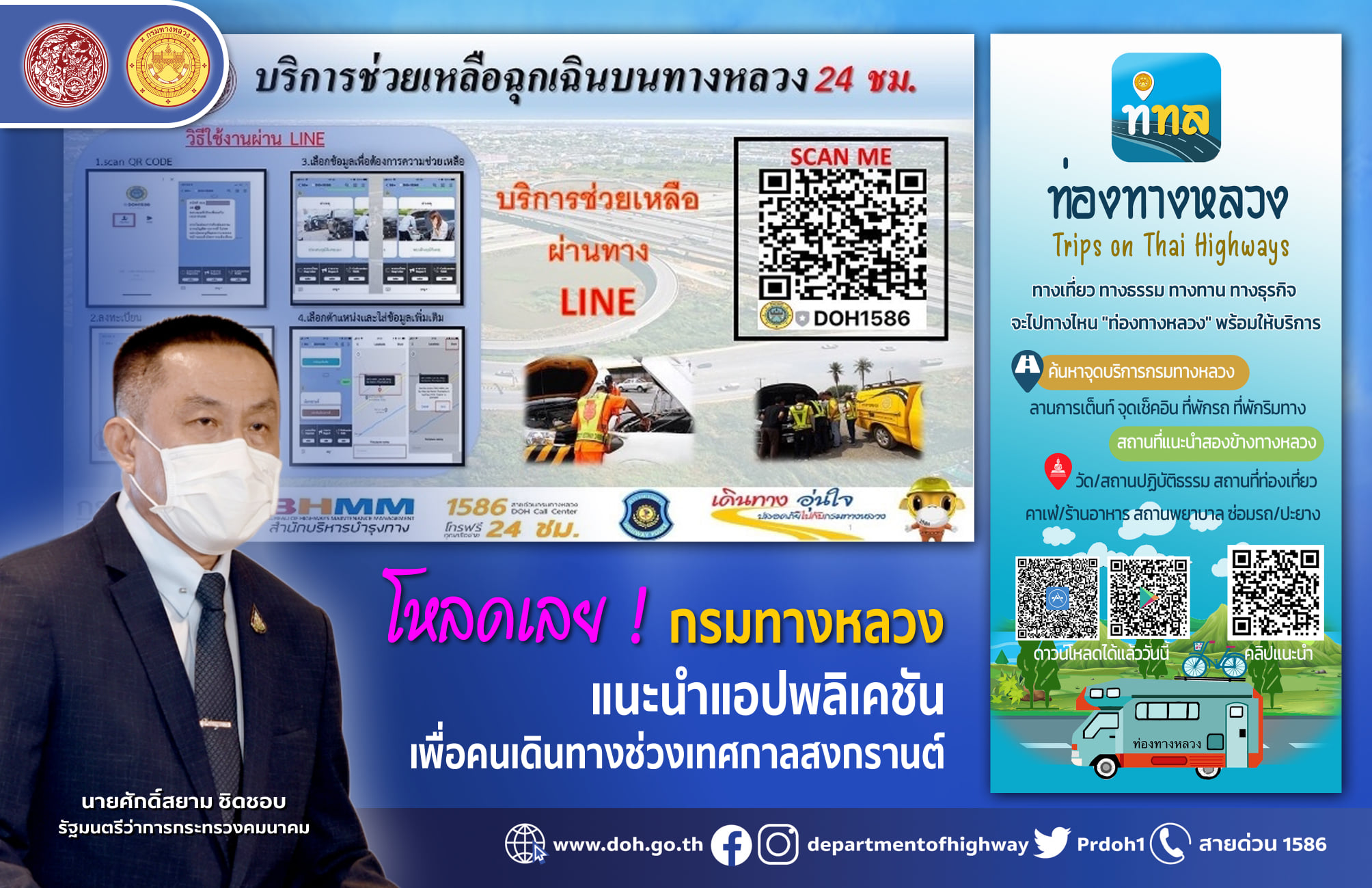 กรมทางหลวง เชิญชวนประชาชนดาวน์โหลดแอปพลิเคชันเพื่อการเดินทาง