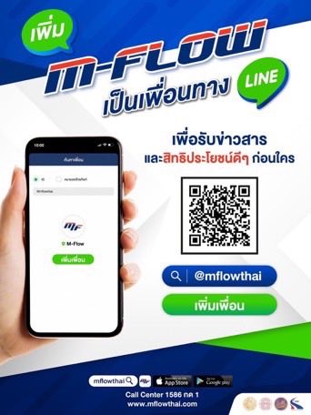 200 18/02/2565 สมัครใช้บริการ M-FLOW ง่าย ๆ เพียง 2 นาที ผ่าน Line OA. เพิ่มเพื่อน @mflowthai หรือ สแกน QR Code แล้วผูกกับบัตรเครดิต