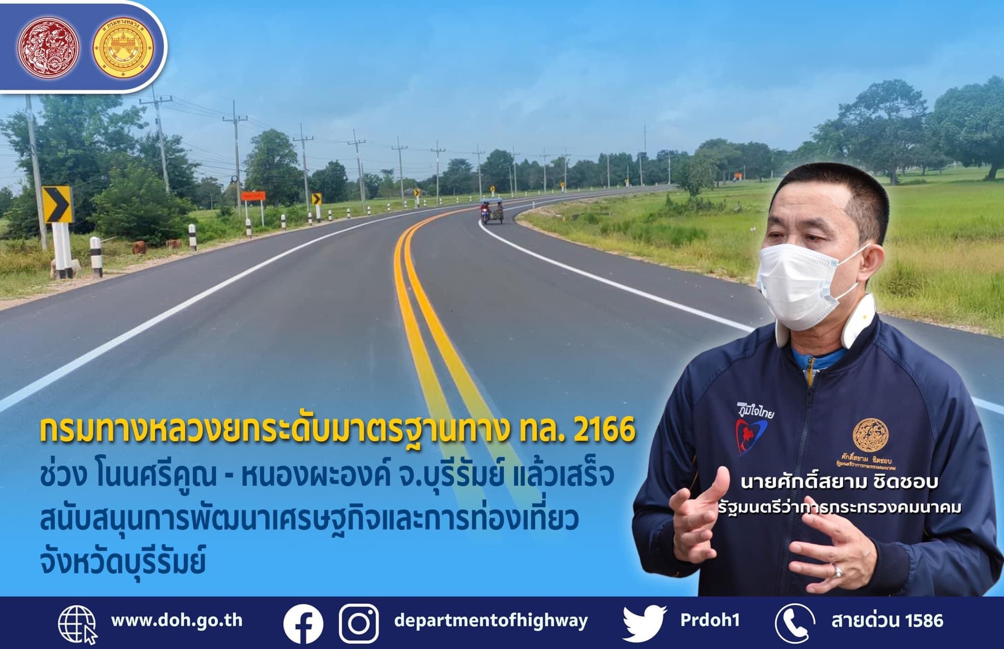 224 15/11/2564 กรมทางหลวงยกระดับมาตรฐานทาง ทล.2166 ช่วง โนนศรีคูณ-หนองผะองค์ จ.บุรีรัมย์ แล้วเสร็จ สนับสนุนการพัฒนาเศรษฐกิจและการท่องเที่ยวจังหวัดบุรีรัมย์