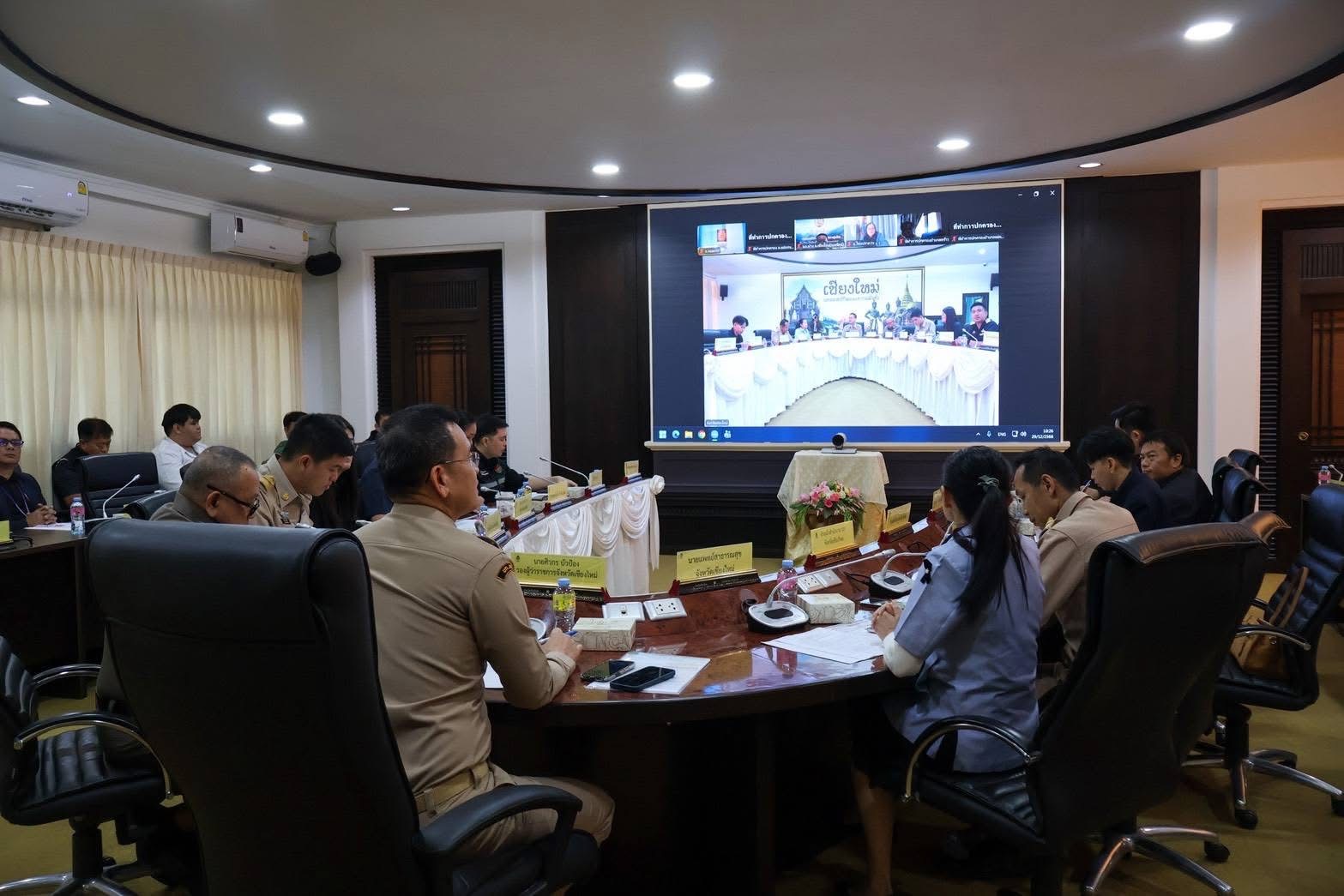 การประชุมฯ ดังกล่าวเป็นการร่วมประชุมผ่านระบบ VDO Conference ร่วมกับกรมป้องกันและบรรเทาสาธารณภัย โดยมีนายชัยวัฒน์ ชื่นโกสุม รองปลัดกระทรวงมหาดไทย เป็นประธานการประชุมเปิดศูนย์ป้องกันและลดอุบัติเหตุทางถนนช่วงเทศกาลปีใหม่ พ.ศ. 2569