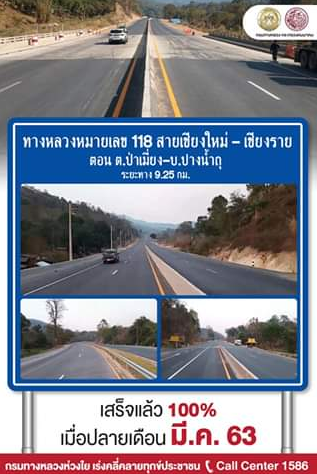 ปัจจุบันโครงการก่อสร้างทางหลวงหมายเลข 118 สายเชียงใหม่ - เชียงราย มีความคืบหน้าอย่างต่อเนื่อง ดังนี้.-