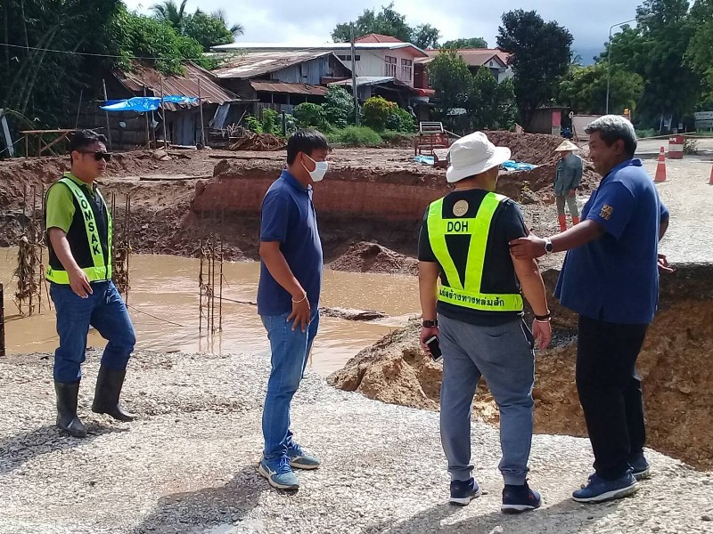กรมทางหลวง รายงานฝนตกหนักต่อเนื่องตลอดคืนวันที่ 21 ก.ค. 63 น้ำป่าไหลทะลักแรงทำให้ทางเบี่ยงที่จุดก่อสร้างสะพานขาดเป็นช่องกว้างประมาณ 10 เมตร บนทางหลวงหมายเลข 2108 ตอน ธาตุจอมศรี-ชมเจริญ กม. 0+195 อ.เชียงคาน จ.เลย รถไม่สามารถสัญจรไปมาได้ แขวงทางหลวงเลยที่ 1 และศูนย์สร้างทางหล่มสัก ได้ระดมเครื่องจักรเข้าพื้นที่เร่งแก้ไขซ่อมแซมในทันที ในเวลา 22:30 น. ประกอบด้วย รถขุด 1 คัน, รถตักหน้าขุดหลัง 1 คัน, รถเกลี่ย 1 คัน, รถบดสั่นสะเทือน 1 คัน, รถบรรทุก 10 ล้อ 2 คัน และรถบรรทุก 6 ล้อ 4 คัน พร้อมเจ้าหน้าที่ โดยจะวางท่อกลมขนาด 1.0 ม. เพิ่มเติมอีก 2 แถว และลงหินคลุกบดอัดแน่นต่อไป สถานการณ์ล่าสุดวันที่ 22 ก.ค. 63 ระดับน้ำลดลงแล้ว คาดว่าจะแก้ไขแล้วเสร็จ เปิดให้การจราจรผ่านได้เป็นปกติภายในเวลา 15:00 น. วันนี้ สำหรับผู้ที่สัญจรผ่านเส้นทางนี้ สามารถใช้ทางเลี่ยง จากอำเภอปากชม ทางหลวงหมายเลข 2108 เลี้ยวซ้ายเข้าทางหลวงชนบท ลย. 4009 ประมาณ 1.4 กิโลเมตร แล้วเลี้ยวขวา 1.8 กิโลเมตร เข้าทางหลวงหมายเลข 201 เพิ่อไปจังหวัดเลยได้ กรมทางหลวงขออภัยในความไม่สะดวก สามารถสอบถามข้อมูลเพิ่มเตอม ได้ที่ แขวงการทางเลยที่ 1 โทร. 089-861-9753 หรือสายด่วนกรมทางหลวง โทร. 1586