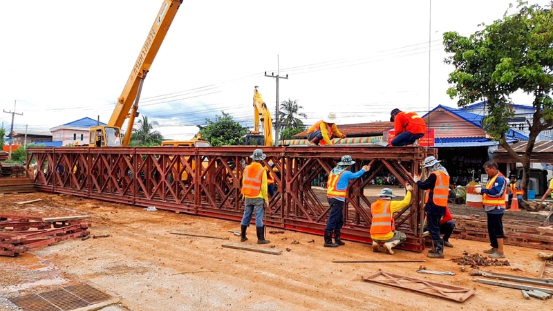 ทางหลวงหมายเลข 1176 ตอน ท่าโพธิ์ – บ้านสวน น้ำกัดเซาะคอสะพาน ช่วงกม.ที่ 3 บริเวณสะพานห้วยทรายขาว อยู่ระหว่างดำเนินการจัดทำทางเลี่ยง พร้อมเจ้าหน้าที่อำนวยความสะดวกด้านการจราจรในพื้นที่