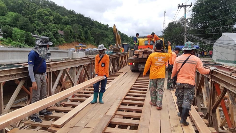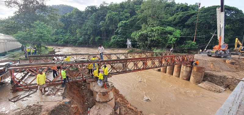 สะพานตัวที่ 5 ที่ กม.38+055 ติดตั้งสะพานเหล็ก (เบลีย์) เสร็จเรียบร้อย พร้อมใช้งาน