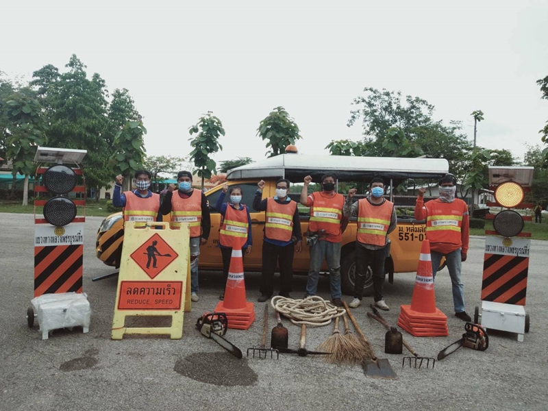 - ตรวจสอบสภาพความเรียบร้อยของผิวทาง ต้องไม่มีหลุมบ่อ พร้อมสำรวจพื้นที่เสี่ยงต่อภัยพิบัติ สะพาน ท่อระบบน้ำ ร่องน้ำในเขตทางให้อยู่ในสภาพดี พร้อมใช้งานและดำเนินการขุดลอกร่องระบายบริเวณสองข้างทาง ทำความสะอาดช่องทางระบายน้ำ กำจัดเศษขยะวัชพืชมิให้กีดขวางทางระบบน้ำ ตัดแต่งกิ่งไม้ และจัดเตรียมเครื่องจักร ยานพาหนะ วัสดุอุปกรณ์ เครื่องสูบน้ำ สิ่งอำนวยความปลอดภัยป้ายจราจร หรือป้าย Knock Down ป้ายแนะนำเส้นทาง หลักนำทาง ไฟกระพริบ ฯลฯ ให้สามารถใช้งานได้ทันที เมื่อเกิดสถานการณ์ภัยพิบัติ