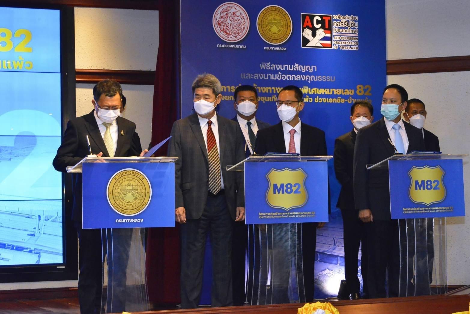 นอกจากการลงนามในสัญญาก่อสร้างแล้ว กระทรวงฯ โดย ทล. ยังได้ร่วมลงนามในบันทึกข้อตกลงคุณธรรม เพื่อสร้างความร่วมมือป้องกันการทุจริตในการจัดซื้อจัดจ้างของโครงการฯ และตั้งเป้าหมายให้การใช้เงินงบประมาณเป็นไปอย่างคุ้มค่าและมีประสิทธิผล และปฏิบัติการจัดซื้อจัดจ้างด้วยความสุจริต โปร่งใสและเป็นธรรม