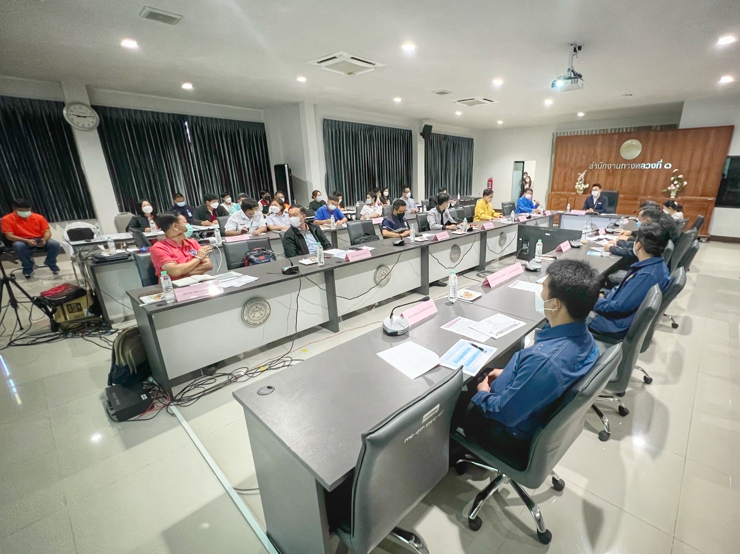 วันพฤหัสบดีที่ 24 มีนาคม 2565 เวลา 09.00 น. นายวิจารย์ ขุนเสถียร ผู้อำนวยการสำนักงานทางหลวงที่ 1 พร้อมด้วยหัวหน้าส่วนราชการกระทรวงคมนาคมจังหวัดเชียงใหม่ และคณะผู้บริหาร ให้การต้อนรับและเข้าร่วมการประชุมเนื่องในโอกาสที่ นายสรพงศ์ ไพฑูรย์พงษ์ รองปลัดกระทรวงคมนาคม และคณะฯ เดินทางตรวจราชการในพื้นที่จังหวัดเชียงใหม่ เพื่อติดตามผลการปฏิบัติงานของหน่วยงานในสังกัดกระทรวงคมนาคม และโอกาสนี้ ผู้อำนวยการสำนักงานทางหลวงที่ 1 ได้บรรยายสรุปผลการปฏิบัติงานและการเตรียมความพร้อมการอำนวยความสะดวกและการให้บริการประชาชนในช่วงเทศกาลสงกรานต์ พ.ศ.2565 ของสำนักงานทางหลวงที่ 1 ณ ห้องประชุม 1 ชั้น 3 สำนักงานทางหลวงที่ 1