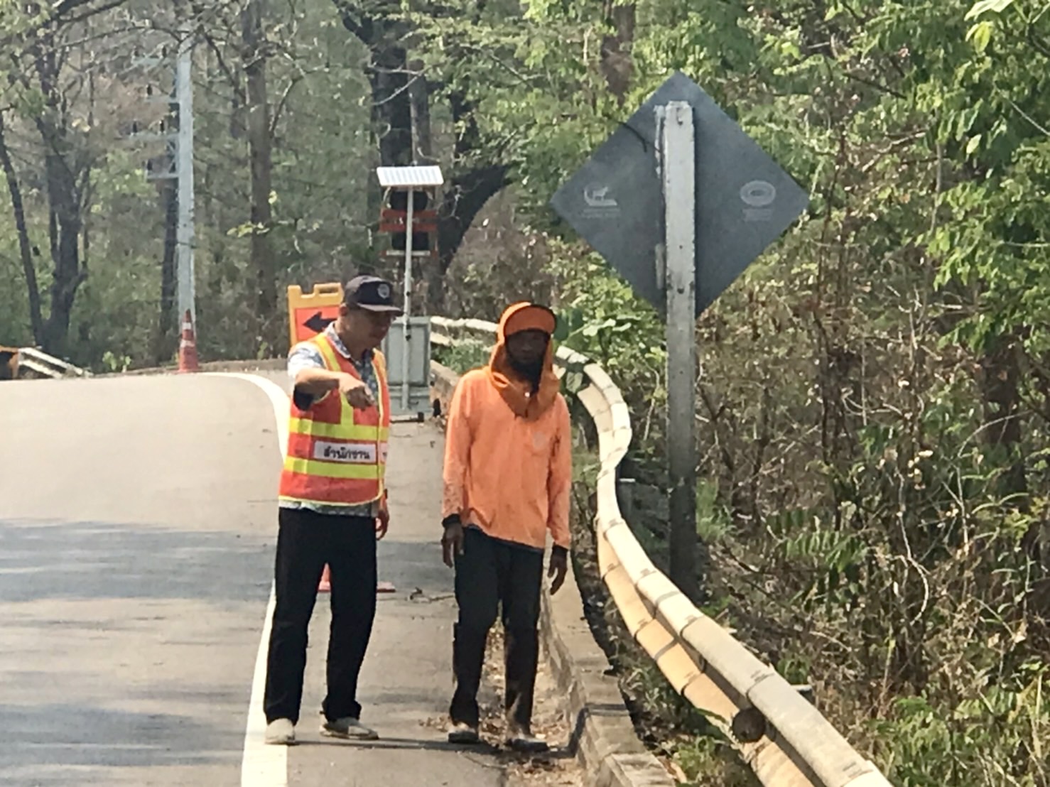 โอกาสนี้ นายวรศักดิ์ วงษ์รอด ได้ให้กำลังใจเจ้าหน้าซึ่งกำลังปฏิบัติงานบนทางหลวง พร้อมให้ข้อแนะนำแนวทางในการดำเนินงาน เพื่อให้ถูกต้องเป็นไปตามระเบียบและมาตรฐานของกรมทางหลวง