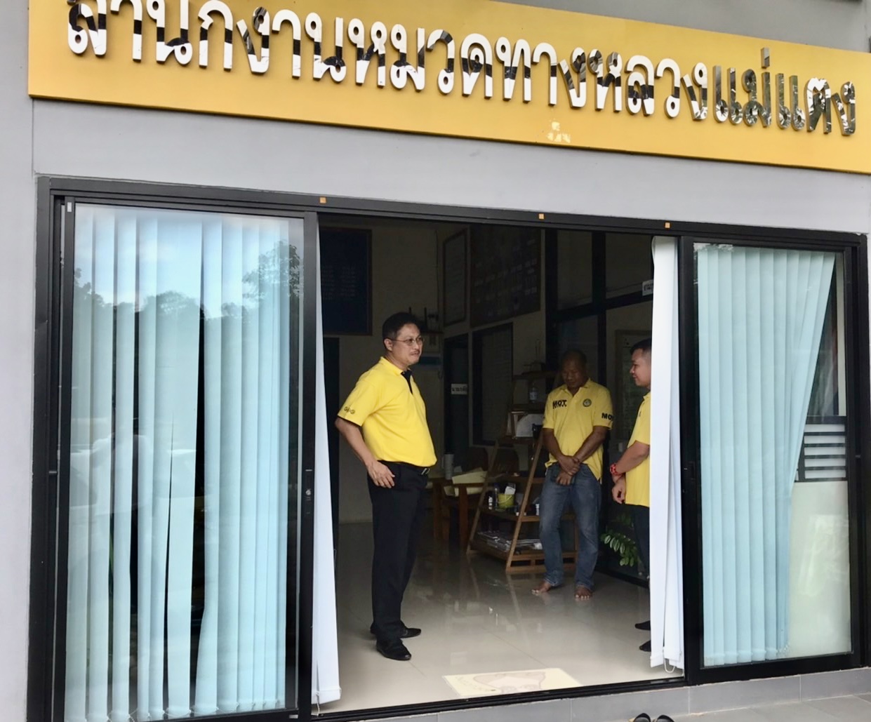 ต่อมาได้เดินทางไปตรวจเยี่ยมให้กำลังใจเจ้าหน้าที่ ณ หมวดทางหลวงแม่แตง พร้อมติดตามผลการดำเนินงาน แลกเปลี่ยนความคิดเห็นเกี่ยวกับการปฏิบัติงาน รับทราบความต้องการของเจ้าหน้าที่ ตลอดจนได้ให้ข้อแนะนำแนวทางการดำเนินงานกับ นายกตัญญ์ปัฐน์ ลีภัทตราภรณ์ หัวหน้าหมวดทางหลวงแม่แตง และเจ้าหน้าที่หมวดทางหลวงแม่แตง