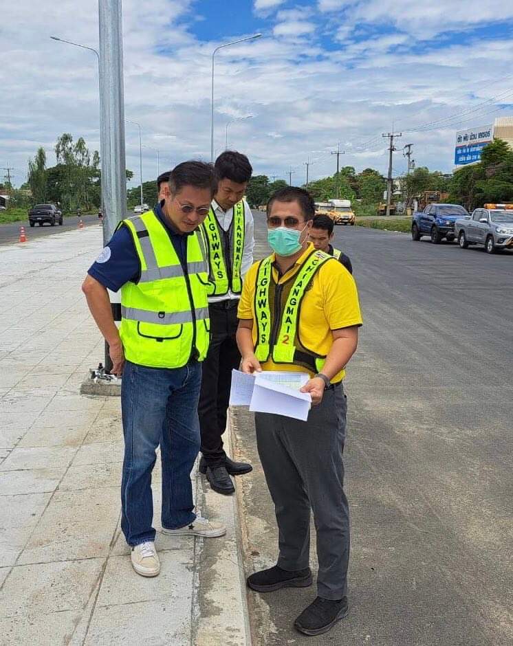 (23 มิ.ย.66) นายวรศักดิ์ วงษ์รอด วิศวกรโยธาเชี่ยวชาญ รักษาราชการแทน ผู้อำนวยการสำนักงานทางหลวงที่ 1 พร้อมด้วย นายนิคม เทพบุตร ผู้อำนวยการแขวงทางหลวงเชียงใหม่ที่ 2 นายธีระพงษ์ ขจรเดชากุล รองผู้อำนวยการแขวงทางหลวงเชียงใหม่ที่ 2 (ฝ่ายวิศวกรรม) นายวิทยา ไชยนันท์ รองผู้อำนวยการแขวงทางหลวงเชียงใหม่ที่ 2 (ฝ่ายปฏิบัติการ ) และเจ้าหน้าที่ ลงพื้นที่ติดตามความก้าวหน้าการดำเนินงานปรับปรุงจุดเสี่ยงและบริเวณอันตรายบนทางหลวงหมายเลข 1317 ตอน สันกลางใต้-ห้วยแก้ว กม.14+075-16+000 โดยมี นายศรายุทธ เดชประทุม หัวหน้าหมวดทางหลวงสันกำแพง เป็นผู้รายงานความก้าวหน้าผลการดำเนินงาน