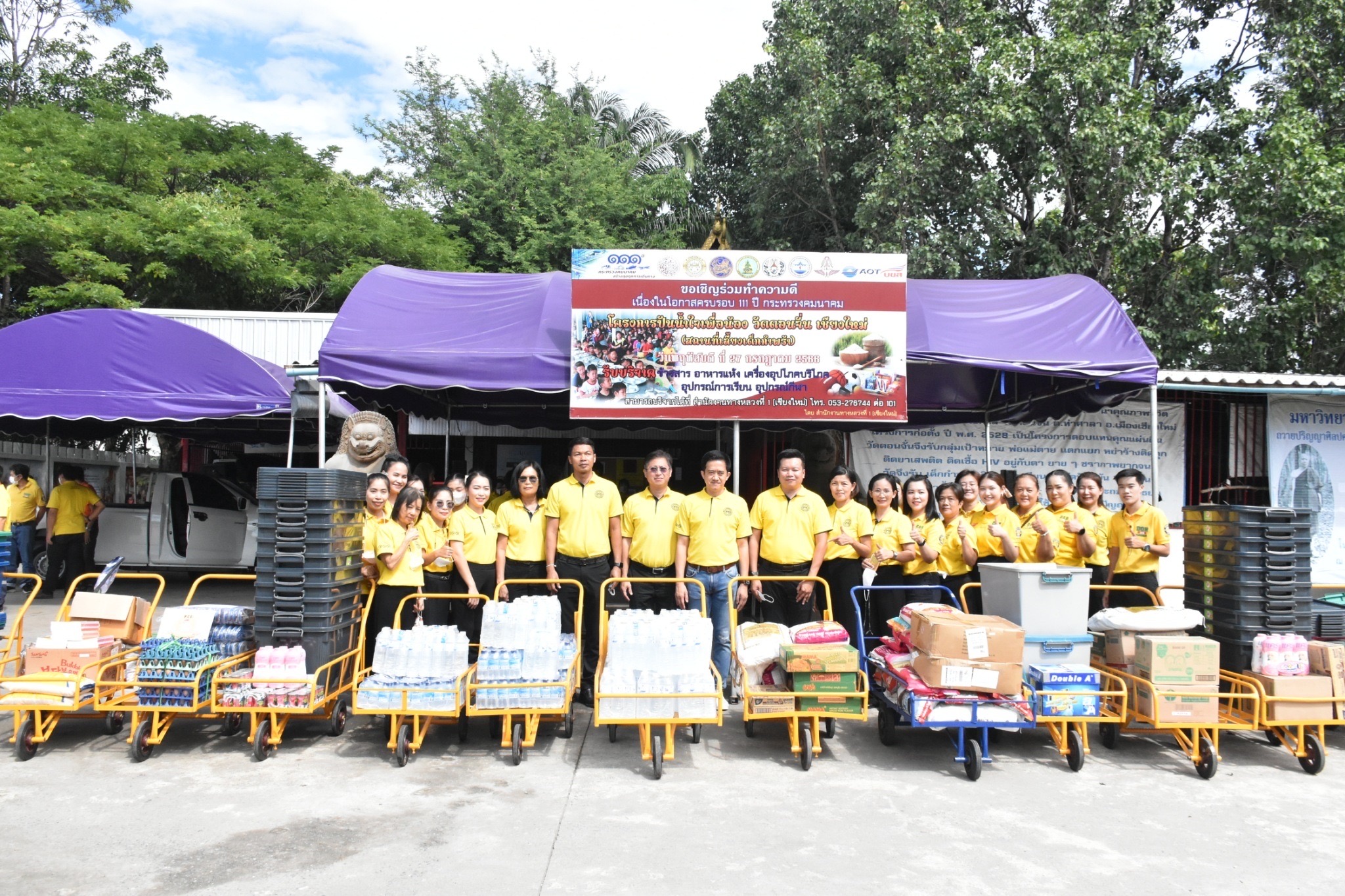 หน่วยงานกระทรวงคมนาคมในพื้นที่จังหวัดเชียงใหม่จัดกิจกรรม “โครงการปันน้ำใจเพื่อน้อง” วัดดอนจั่นเชียงใหม่ (สถานที่เลี้ยงเด็กกำพร้า ) เนื่องในโอกาสครบรอบ ๑๑๑ ปี กระทรวงคมนาคม