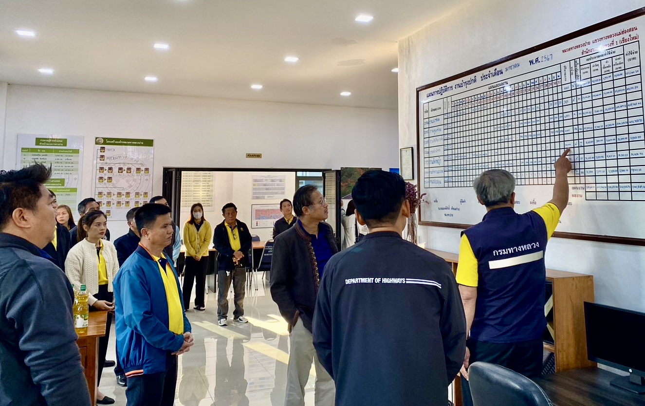 วันที่ 16-17 มกราคม 2567 นายวรศักดิ์ วงษ์รอด ผู้อำนวยการสำนักงานทางหลวงที่ 1 เดินทางไปตรวจราชการในพื้นที่แขวงทางหลวงแม่ฮ่องสอน และหมวดทางหลวงปาย เพื่อติดตามการดำเนินงานและตรวจเยี่ยมให้กำลังใจเจ้าหน้าที่ โดยมีว่าที่ร้อยตรียอดเพ็ชร คำแสงดี ผู้อำนวยการแขวงทางหลวงแม่ฮ่องสอน นายธนกร วงศ์พุฒิ รองผู้อำนวยการแขวงทางหลวงแม่ฮ่องสอน (ฝ่ายวิศวกรรม) นายวัธนา เชื้อทอง รองผู้อำนวยการแขวงทางหลวงแม่ฮ่องสอน (ฝ่ายปฏิบัติการ) นางสาวนิชาภา เทพนากิจ รองผู้อำนวยการแขวงทางหลวงแม่ฮ่องสอน (ฝ่ายบริหารงานทั่วไป) หัวหน้าหมวดทางหลวง พร้อมเจ้าหน้าที่ ให้การต้อนรับ และรายงานผลการปฏิบัติงาน พร้อมทั้งร่วมแลกเปลี่ยนแนวทางการปฏิบัติงานเพื่อพัฒนางานบำรุงรักษาทางหลวงให้มีประสิทธิภาพ