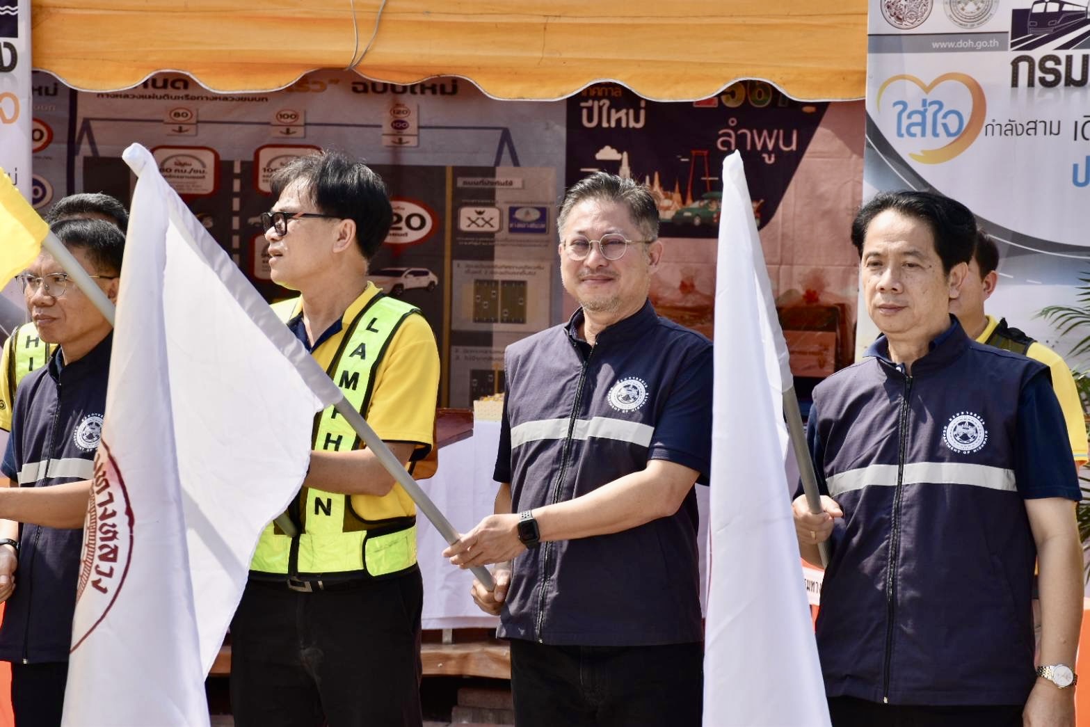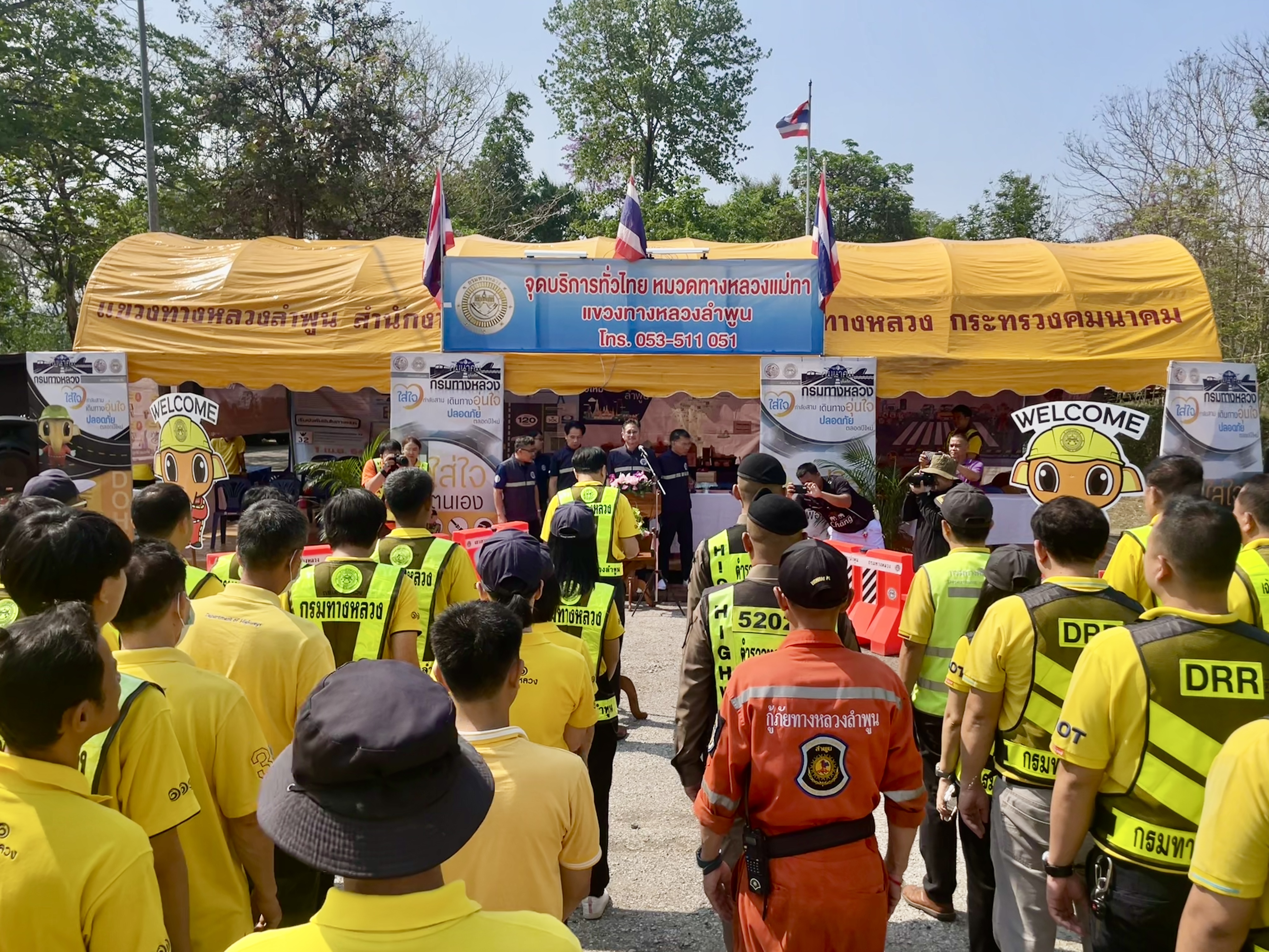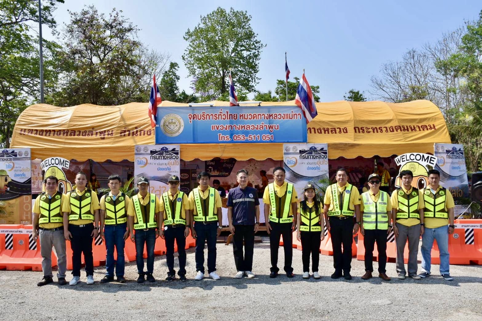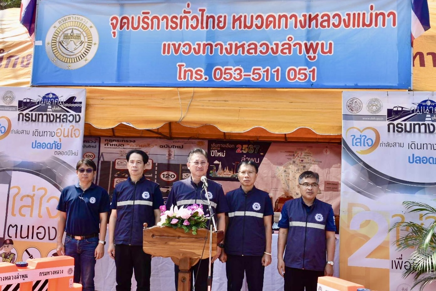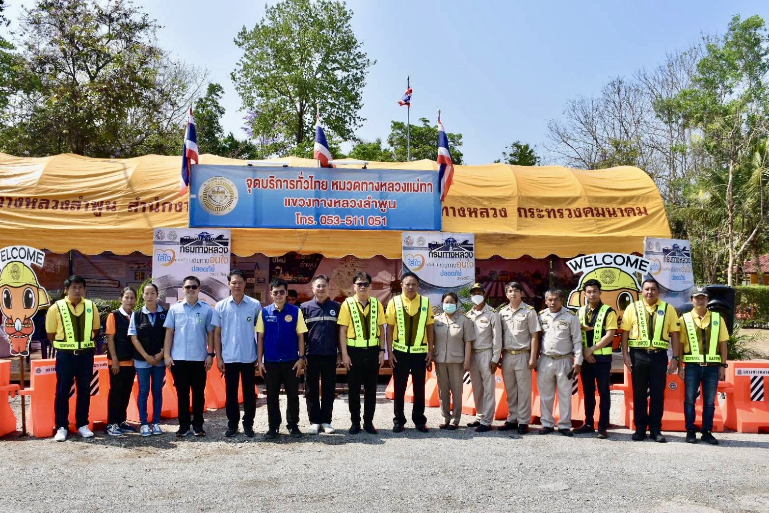 นายวรศักดิ์ วงษ์รอด ผู้อำนวยการสำนักงานทางหลวงที่ 1 เป็นประธานในพิธีเปิด “ศูนย์อำนวยความสะดวกและปลอดภัยเทศกาลสงกรานต์ พ.ศ.2567” ณ จุดให้บริการทั่วไทย หมวดทางหลวงแม่ทา แขวงทางหลวงลำพูน ทางหลวงหมายเลข 11 ตอน ขุนตาน – อุโมงค์ ที่ กม.509+200 ต.ทาสบเส้า อ.เมือง จ.ลำพูน โดยมีนายบุญส่ง ด้วงประสิทธิ์ ผู้อำนวยการแขวงทางหลวงลำพูน นายพงษ์พินันท์ บูรณะกิติ ผู้อำนวยการส่วนแผนงาน นายภาสกร เจตะบุตร ผู้อำนวยการส่วนอำนวยความปลอดภัย นายธีระนันท์ ทองแสง ผู้อำนวยการส่วนกฎหมายและกรรมสิทธิ์ที่ดิน นายภาณุวัฒน์ สวนสอน ผู้อำนวยการส่วนไฟฟ้า พร้อมส่วนราชการในจังหวัดลำพูนที่เกี่ยวข้อง และเจ้าหน้าที่แขวงทางหลวงลำพูน เข้าร่วม พิธี ฯ