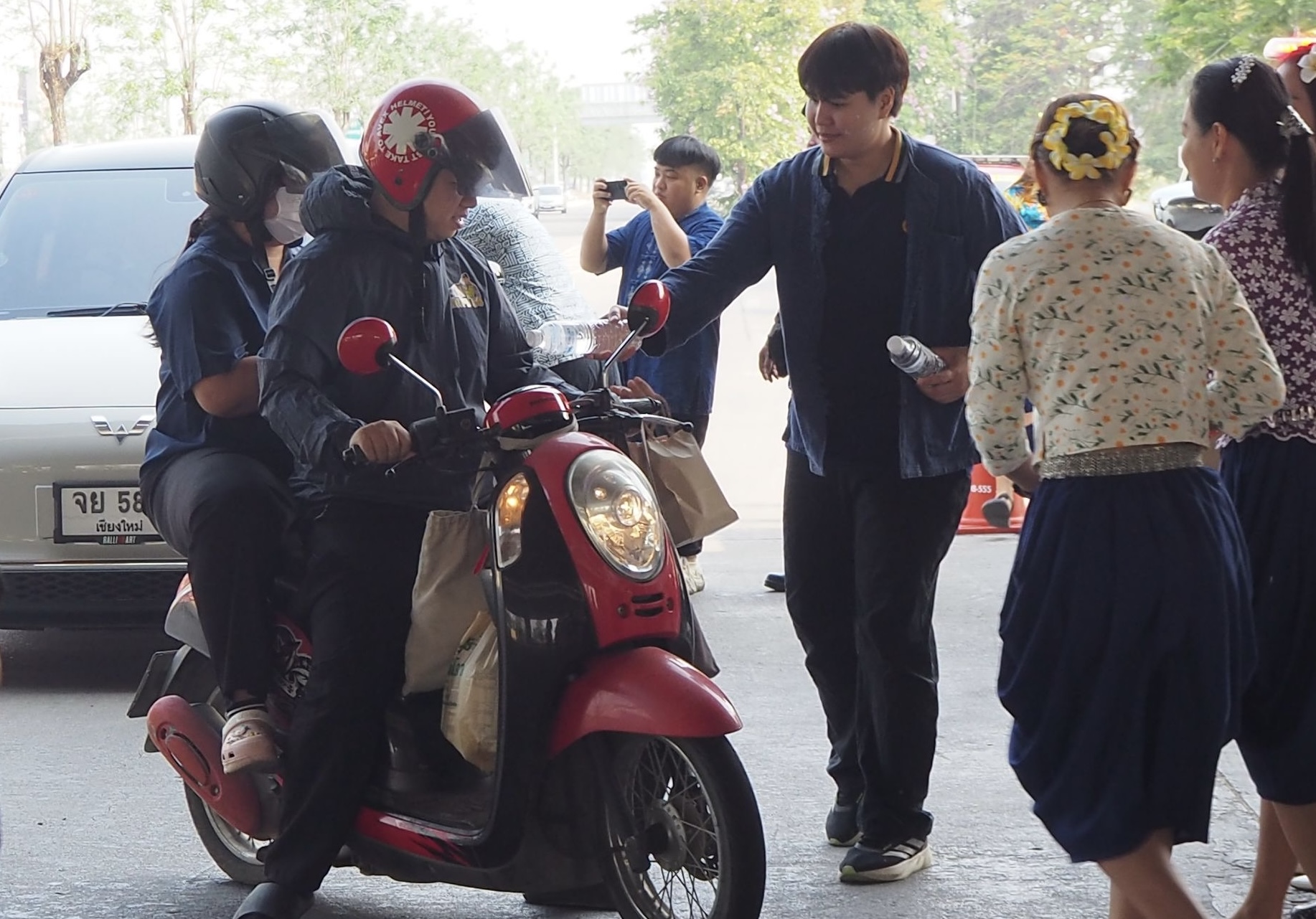ในการนี้ นายสมเดช โสภณดิเรกรัตน์ ผู้อำนวยการแขวงทางหลวงเชียงใหม่ที่ 2 และเจ้าหน้าที่ ได้ร่วมกันมอบน้ำดื่ม แผ่นพับข้อมูลทางหลวง ให้กับผู้ใช้รถใช้ถนนบริเวณทางหลวงหมายเลข 11 ใต้สะพานต่างระดับดอนจั่น (ถนนซุปเปอร์ไฮเวย์) ตำบลท่าศาลา อำเภอเมืองเชียงใหม่ จังหวัดเชียงใหม่ ทำให้บรรยากาศการเปิดจุดบริการประชาชน ศูนย์อำนวยความสะดวกปลอดภัยเทศกาลสงกรานต์ พ.ศ.2568 ของแขวงทางหลวงเชียงใหม่ที่ 2 เต็มไปด้วยรอยยิ้มและมิตรไมตรี ต้อนรับเทศกาลสงกรานต์