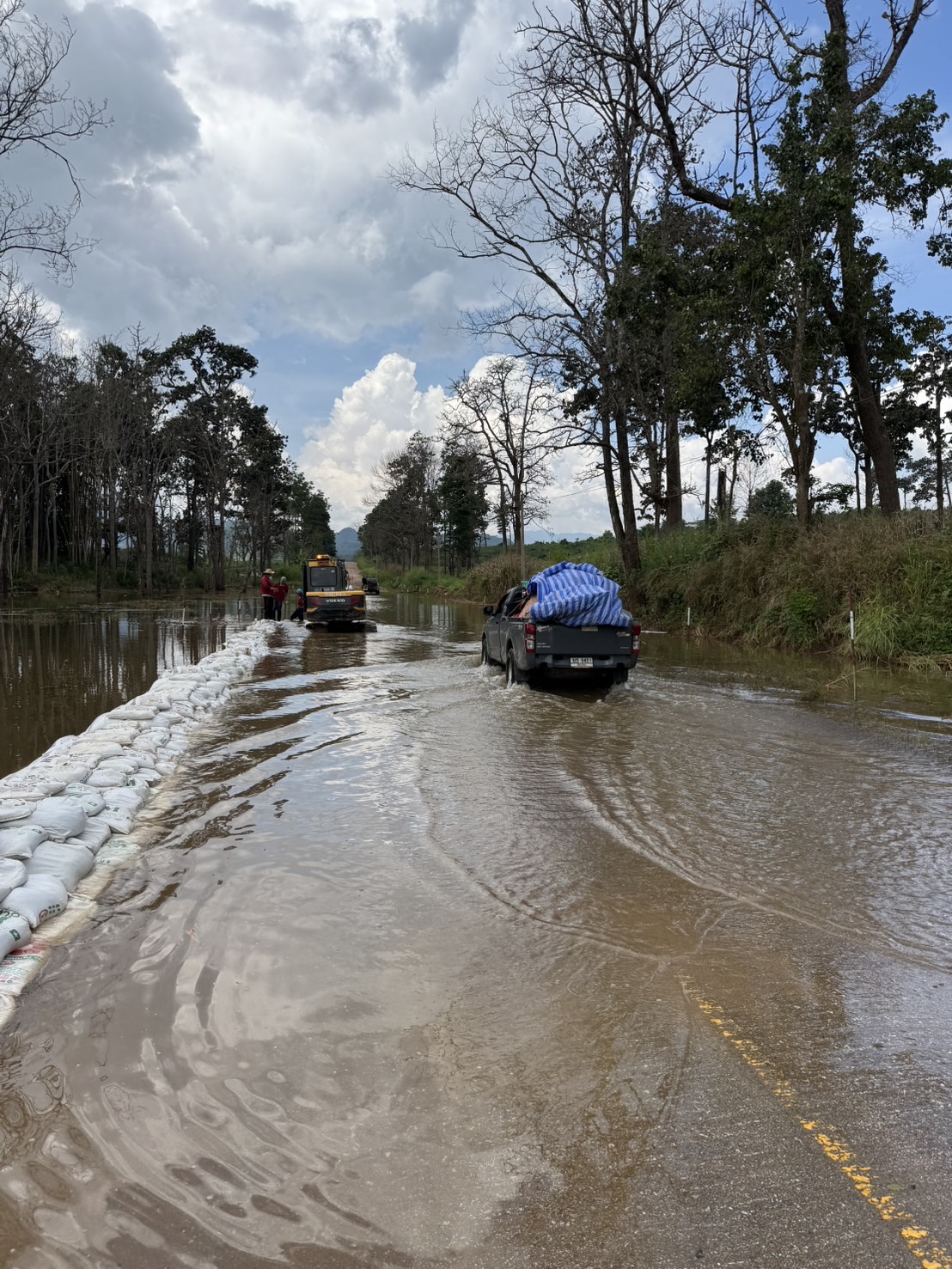 นายวรศักดิ์ วงษ์รอด ผู้อำนวยการสำนักงานทางหลวงที่ 1 พร้อมด้วยนายวารินทร์ คำศรีใจ รองผู้อำนวยการแขวงทางหลวงเชียงใหม่ที่ 3 ลงพื้นที่ติดตามการแก้ไขสถานการณ์น้ำท่วมขังผิวจราจร ซึ่งทำให้การจราจรไม่สามารถผ่านได้ บริเวณทางหลวงหมายเลข ทล.1322 ตอน แม่จา-รินหลวง ที่กม.126+820 - กม.126+950