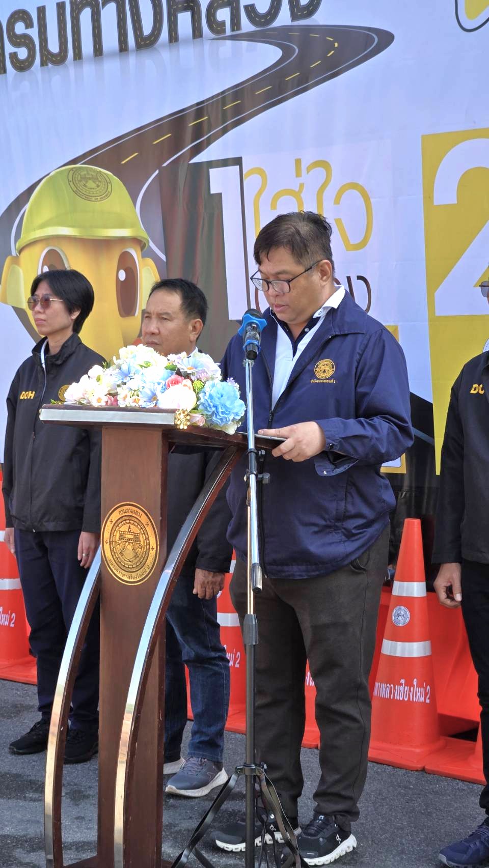 นายสมเดช โสภณดิเรกรัตน์ รองผู้อำนวยการสำนักงานทางหลวงที่ 1 ตำแหน่งที่ 2 เป็นประธานพิธีเปิด “ศูนย์อำนวยความสะดวกและปลอดภัยช่วงเทศกาลปีใหม่ 2569” ณ บริเวณลานหน้าสำนักงานแขวงทางหลวงเชียงใหม่ที่ 2 โดยมีนายสิทธาฤทธิ์ ปรีดานนท์ ให้การต้อนรับและกล่าวรายงาน โอกาสนี้ คณะผู้บริหารสำนักงานทางหลวงและแขวงทางหลวงเชียงใหม่ที่ 2 รวมทั้งข้าราชการ เจ้าหน้าที่ ร่วมพิธีเปิดอย่างพร้อมเพรียง