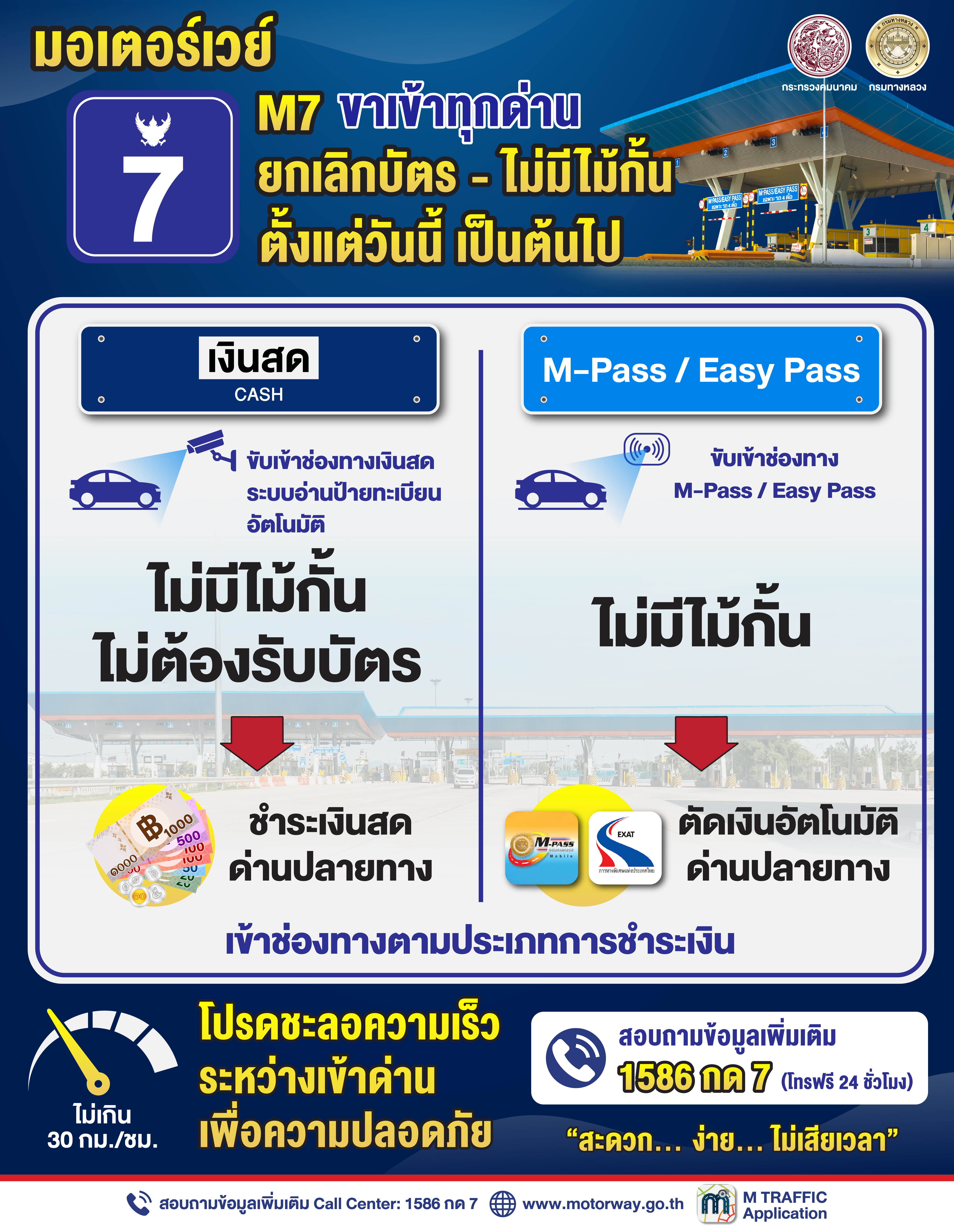 13 03/04/2569 เริ่มแล้ว! มอเตอร์เวย์ M7 "เข้าทุกด่าน" ไม่มีไม้กั้น-ยกเลิกแจกบัตร ใช้เทคโนโลยีอ่านป้ายทะเบียนรถอัตโนมัติ (ALPR) ให้คุณผ่านฉลุยไม่ต้องหยุดรถ