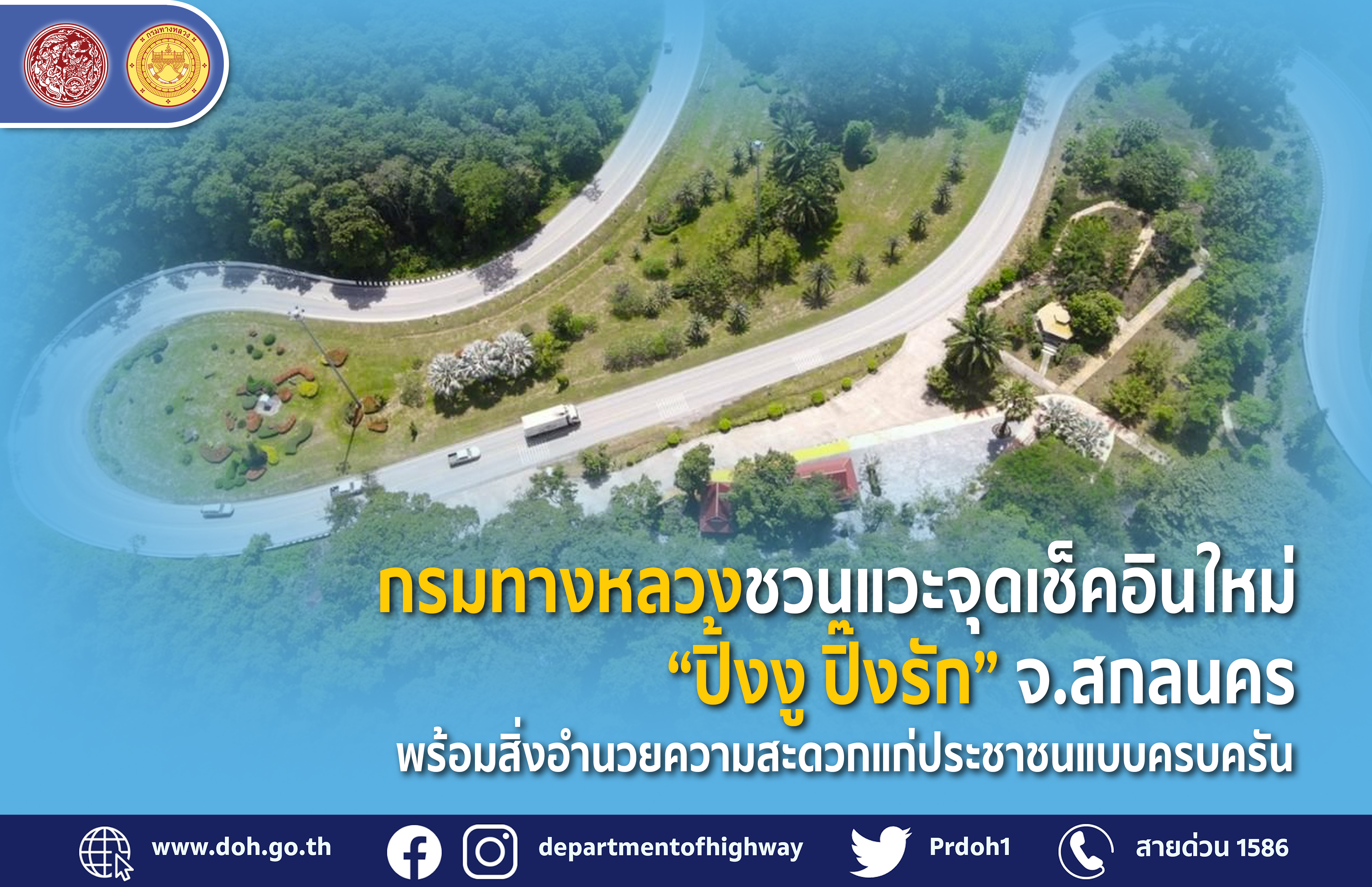 กรมทางหลวงชวนแวะจุดเช็คอินใหม่ “ปิ้งงู ปิ๊งรัก” จ.สกลนคร พร้อมสิ่งอำนวยความสะดวกแก่ประชาชนแบบครบครัน