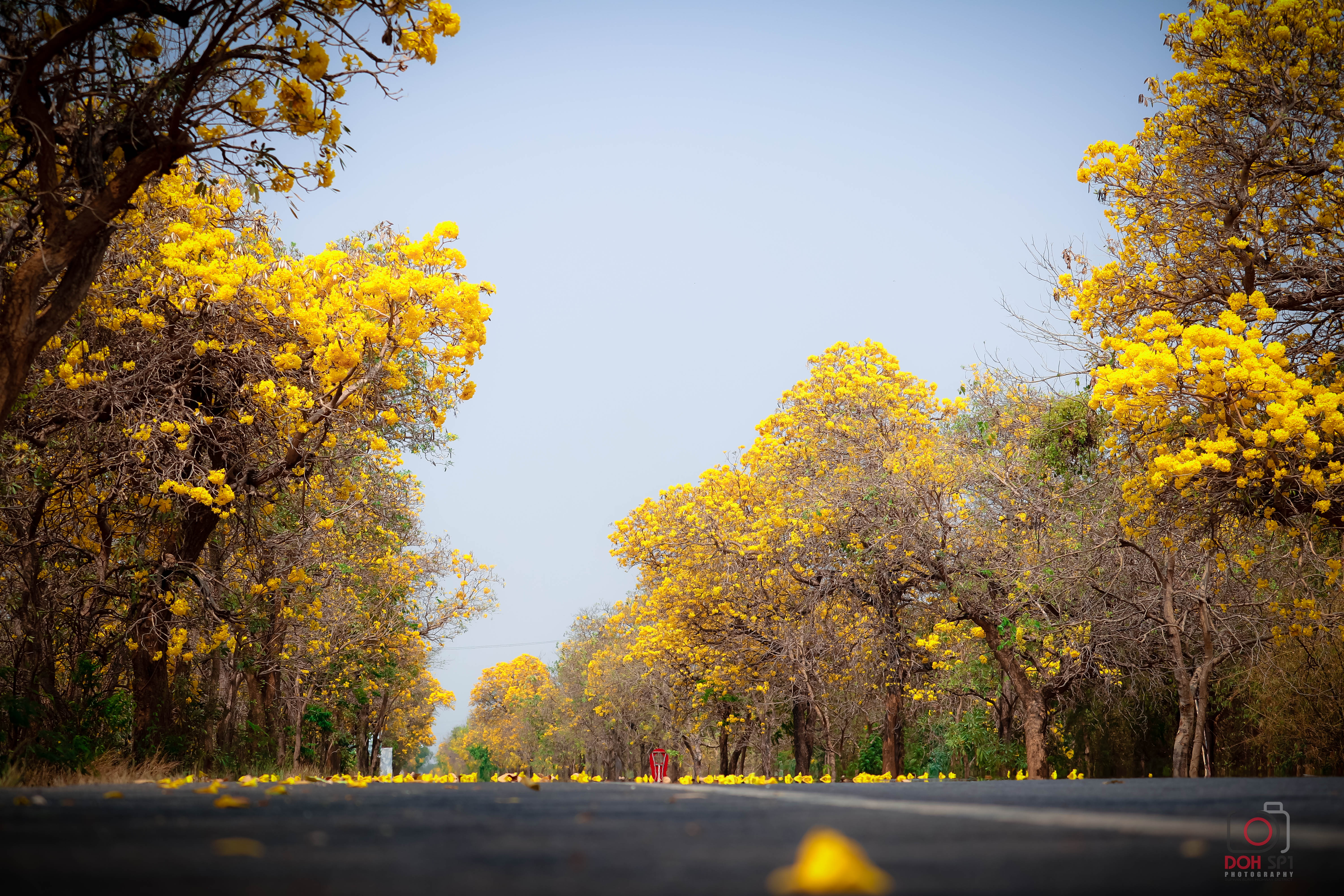 ถนนสายดอกเหลืองปรีดียาธร หรือ ตาเบบูญ่า ตั้งอยู่บนทางหลวงหมายเลข 3502 (ตอน ดอนไร่ – อ่างเก็บน้ำกระเสียว) บริเวณ กม.0+100 – กม.11+200 ระยะทางกว่า 11 กิโลเมตร ในพื้นที่ ตำบลหนองสะเดา อำเภอสามชุก และตำบลหนองโพธิ์ อำเภอหนองหญ้าไซ จังหวัดสุพรรณบุรี ขณะนี้เริ่มออกดอกบานสะพรั่งเต็มสองข้างทางแล้ว ซึ่งจะออกดอกช่วงเดือนกุมภาพันธ์ – มีนาคม ของทุกปี ทั้งนี้ขึ้นอยู่กับสภาพอากาศด้วย ตาเบบูญ่า หรือ เหลืองปรีดียาธร เป็นต้นไม้ที่ หม่อมราชวงศ์ปรีดิยาธร เทวกุล นำเข้ามาปลูกจากอินโดเซีย เป็นไม้ยืนต้น มีลักษณะเป็นรูประฆังสีเหลือง ปลายกลีบแยกเป็นรูปปากเปิด ทำให้ช่วงที่มีการออกดอกนั้น มีความน่าสนใจและดึงดูดให้กับนักท่องเที่ยวและประชาชนที่จะถ่ายภาพจำนวนมาก สำหรับการเดินทางมาท่องเที่ยวจากกรุงเทพฯ ให้ใช้ทางหลวงหมายเลข 340 มุ่งหน้าสู่จังหวัดสุพรรณบุรี เลี้ยวซ้ายที่แยกสามชุก บริเวณ กม. 103 +600 ผ่านตลาดสามชุก ไปยัง ทางหลวงหมายเลข 3365 อีก 4 กิโลเมตร เลี้ยวขวาที่แยกดอนยาว ตัดทางหลวงหมายเลข 3496 อีกประมาณ 5 กิโลเมตร เลี้ยวซ้ายเข้าสู่ ทางหลวงหมายเลข 3502 (ถนนสายดอกไม้) ประวัติความเป็นมาถนนสายดอกไม้นี้ เมื่อปี 2540 กรมทางหลวงได้ก่อสร้างถนนหมายเลข 3502 ตอนดอนไร่ - อ่างเก็บน้ำกระเสียว ซึ่งเป็นเส้นทางเชื่อมต่อระหว่าง อ.สามชุก หนองหญ้าไซ ไปสู่ อ.ด่านช้าง จ.สุพรรณบุรี ได้ปลูกต้นเหลืองปรีดียาธรทั้งสองข้างทาง ตลอดระยะเวลาที่ผ่านมา แขวงฯสุพรรณบุรีที่ 1 โดยหมวดทางหลวงด่านช้าง องค์กรปกครองส่วนท้องถิ่นในพื้นที่ ชาวบ้านในพื้นที่ได้ช่วยดูแลบำรุงรักษาจนออกดอกบานสะพรั่ง เป็นถนนสวยงามและกลายเป็นจุดที่นักท่องเที่ยวให้ความสนใจจนถึงปัจจุบัน