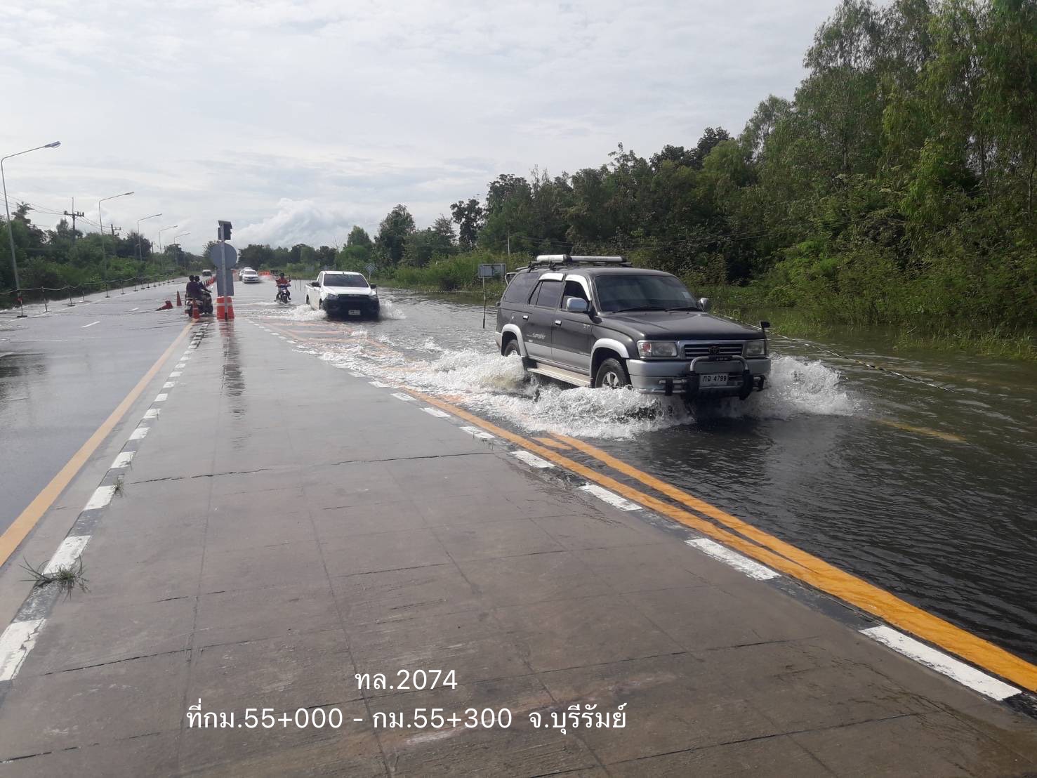 6. จังหวัดบุรีรัมย์ จำนวน 1 แห่ง บนทางหลวงหมายเลข 2378 ตอน สะพานบุรีรินทร์ – ไทรงาม ในพื้นที่ อ.สตึก ช่วง กม.ที่ 20+00 – 20+200 ระดับน้ำ 45 ซม.
