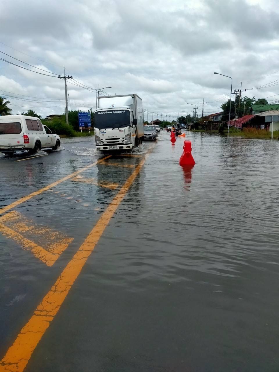 - ทางหลวงหมายเลข 226 ตอน ห้วยขะยุง – วารินชำราบ ในพื้นที่ อ.วารินชำราบ ช่วง กม.ที่ 313+400 – 313+700 ระดับน้ำ 65 ซม. ให้ใช้เส้นทางเลี่ยงท้องถิ่นแทน