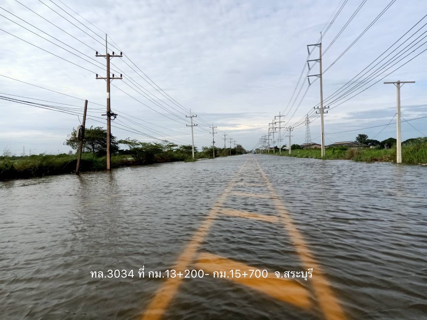 - ทางหลวงหมายเลข 3030 ดงมะขามเทศ – บางระจัน ในพื้นที่ อ.เมือง ช่วง กม.ที่ 0+000 – 0+100 ระดับน้ำ 40 ซม. การจราจรไม่สามารถผ่านได้