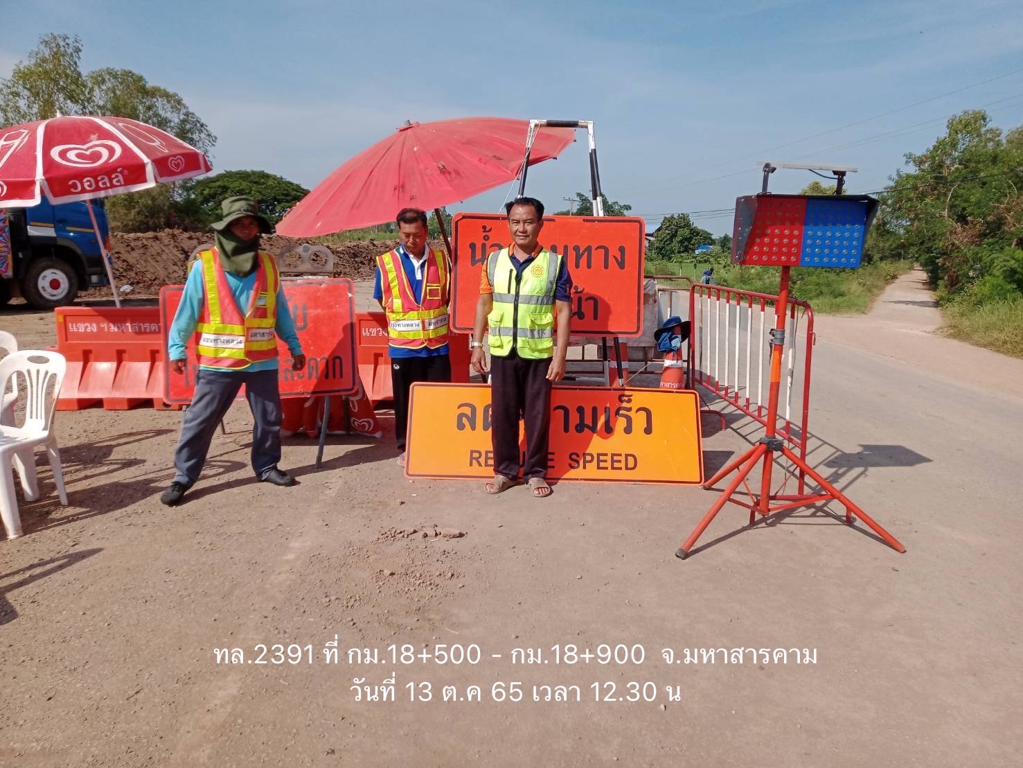 - ทางหลวงหมายเลข 2391 ตอน กู่ทอง - บ้านเขื่อน พื้นที่ อ.เมือง ช่วง กม.ที่ 17+300 - กม.18+000 ระดับน้ำ 40 ซม. ให้ใช้ทางเลี่ยง ทล.12 ช่วง กม.567+900