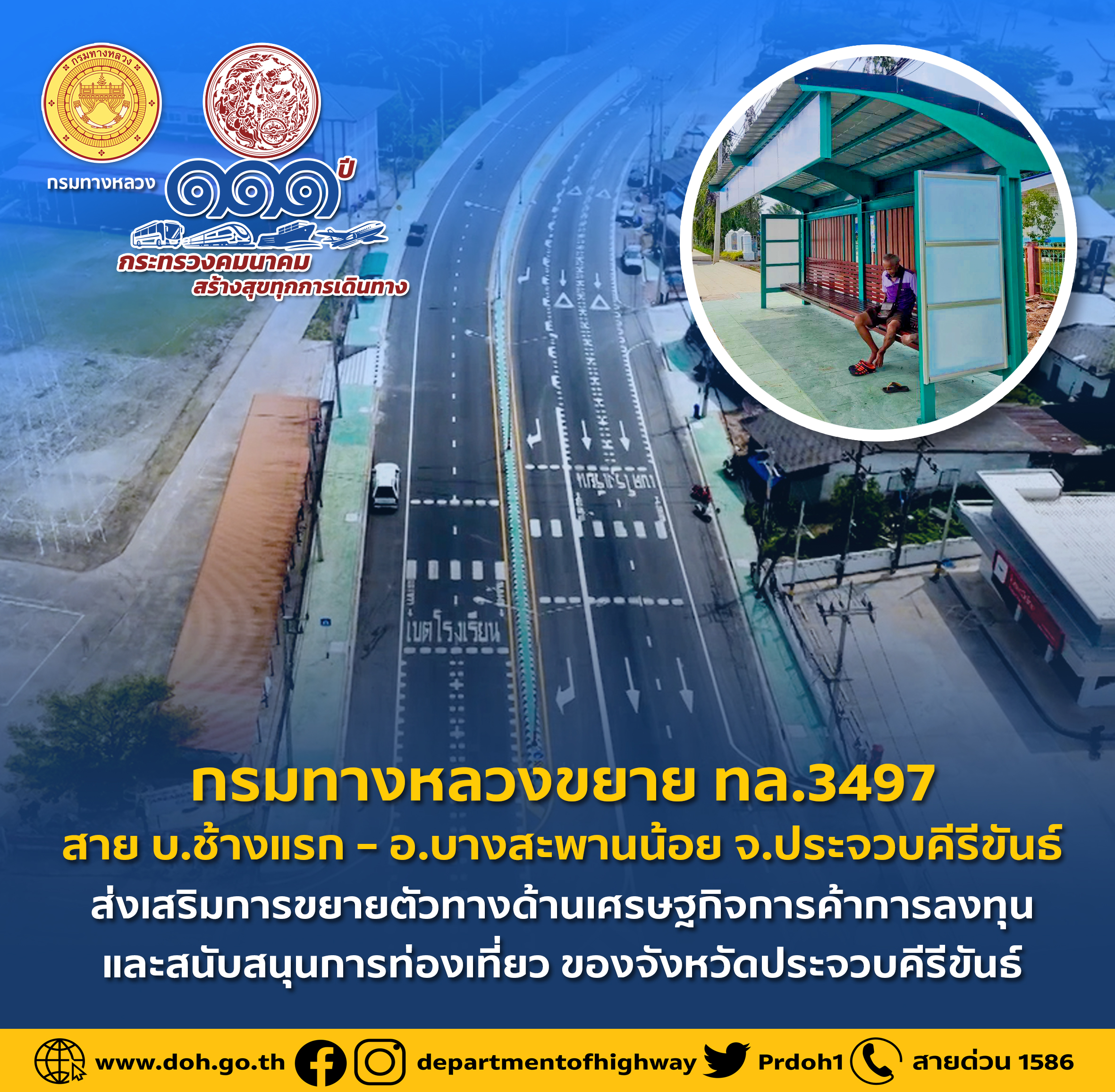 กรมทางหลวงขยาย ทล.3497 สาย บ.ช้างแรก – อ.บางสะพานน้อย จ.ประจวบคีรีขันธ์ ส่งเสริมการขยายตัวทางด้านเศรษฐกิจ การค้า การลงทุน และสนับสนุนการท่องเที่ยว ของจังหวัดประจวบคีรีขันธ์