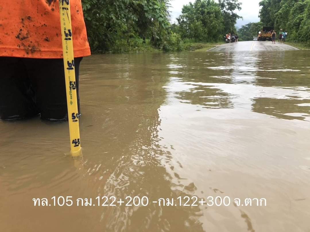 1.ทางหลวงหมายเลข 105 แม่สลิดหลวง - แม่เงา ช่วง กม.122+200 – 122+300 ในพื้นที่อำเภอท่าสองยาง จังหวัดตาก ระดับน้ำสูง 40 ซม. ทำให้การจราจรผ่านไม่ได้ แนะนำให้ใช้ทางหลวงท้องถิ่นเป็นทางเลี่ยง