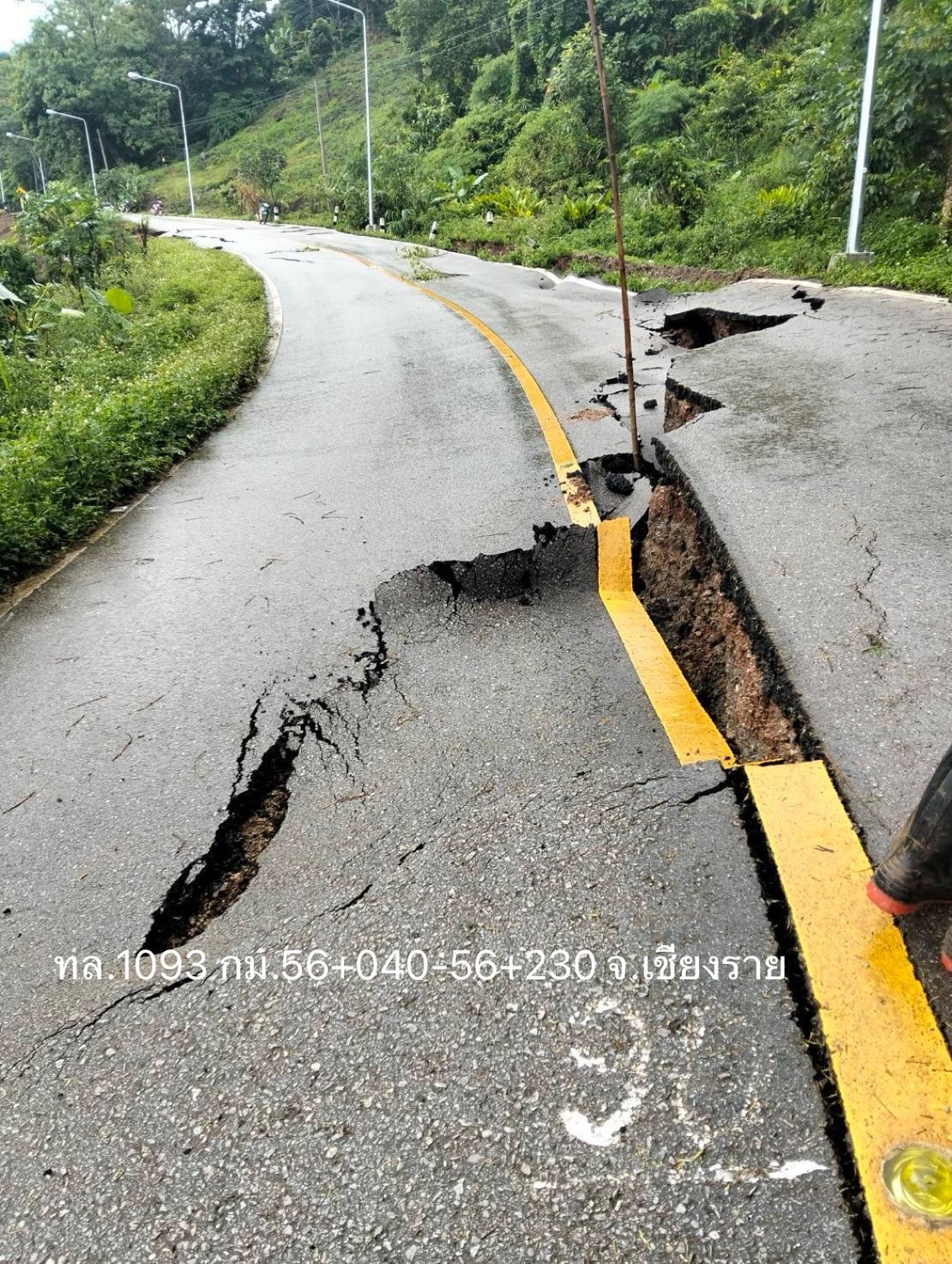 จังหวัดเชียงราย เกิดเหตุดินสไลด์ทำให้ผิวทางทรุดตัว ไม่มีเส้นทางเลี่ยงทดแทน