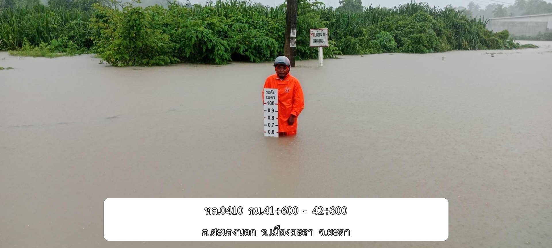 •ทล.4060 กะรุบี – ตะโล๊ะหะลอ ช่วง กม.ที่ 27+200 - 27+300 อ.รามัน จ.ยะลา ระดับน้ำ 20 ซม.