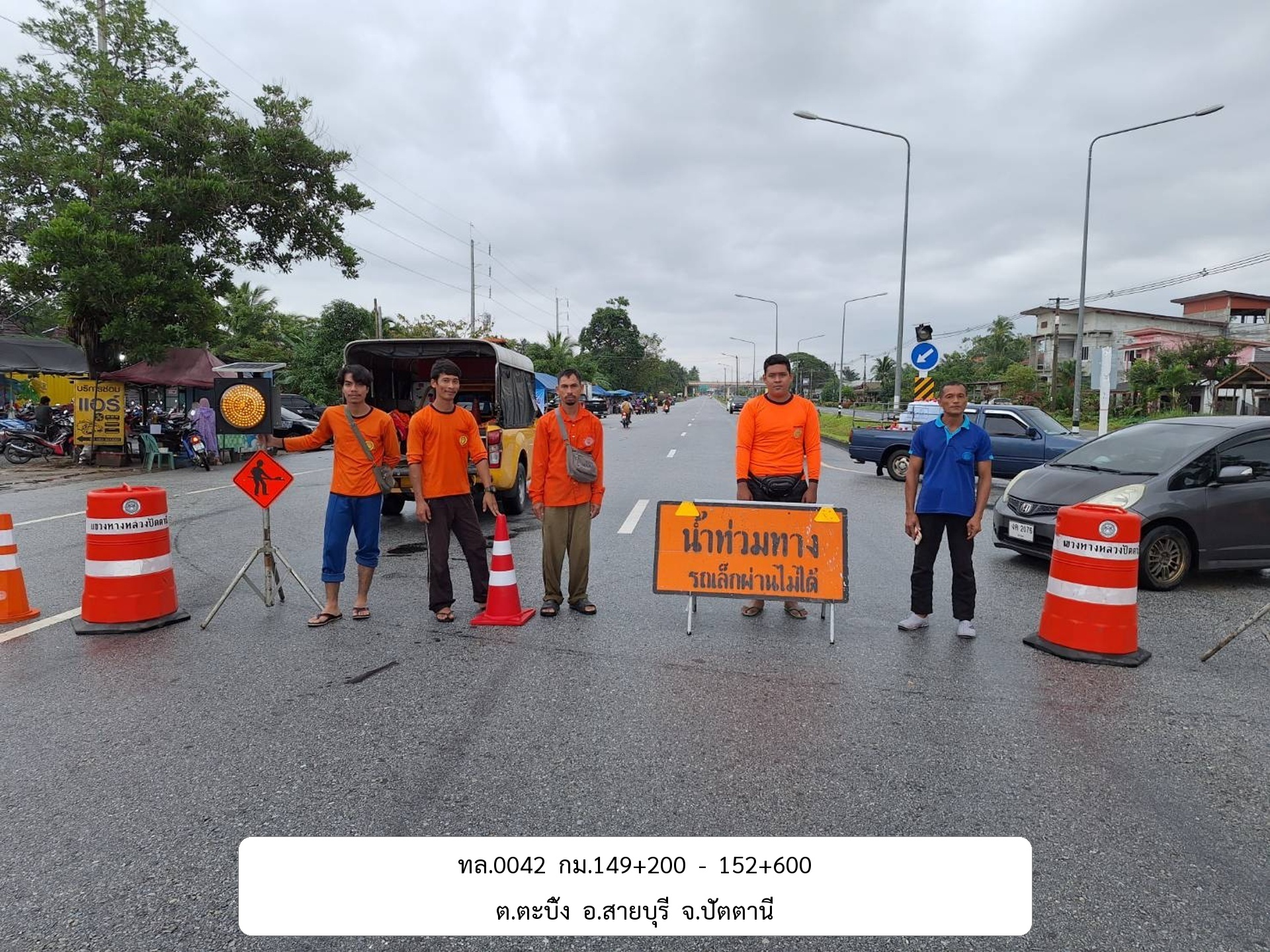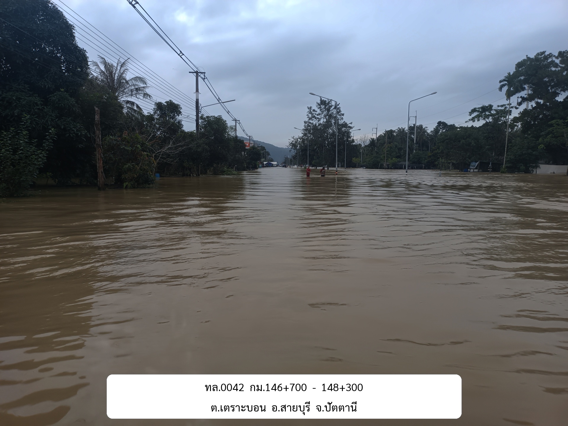 ทล.42 ปาลัส – กอตอ ช่วง กม.ที่ 149+200 - 152+600 อ.สายบุรี ระดับน้ำ 35 ซม.