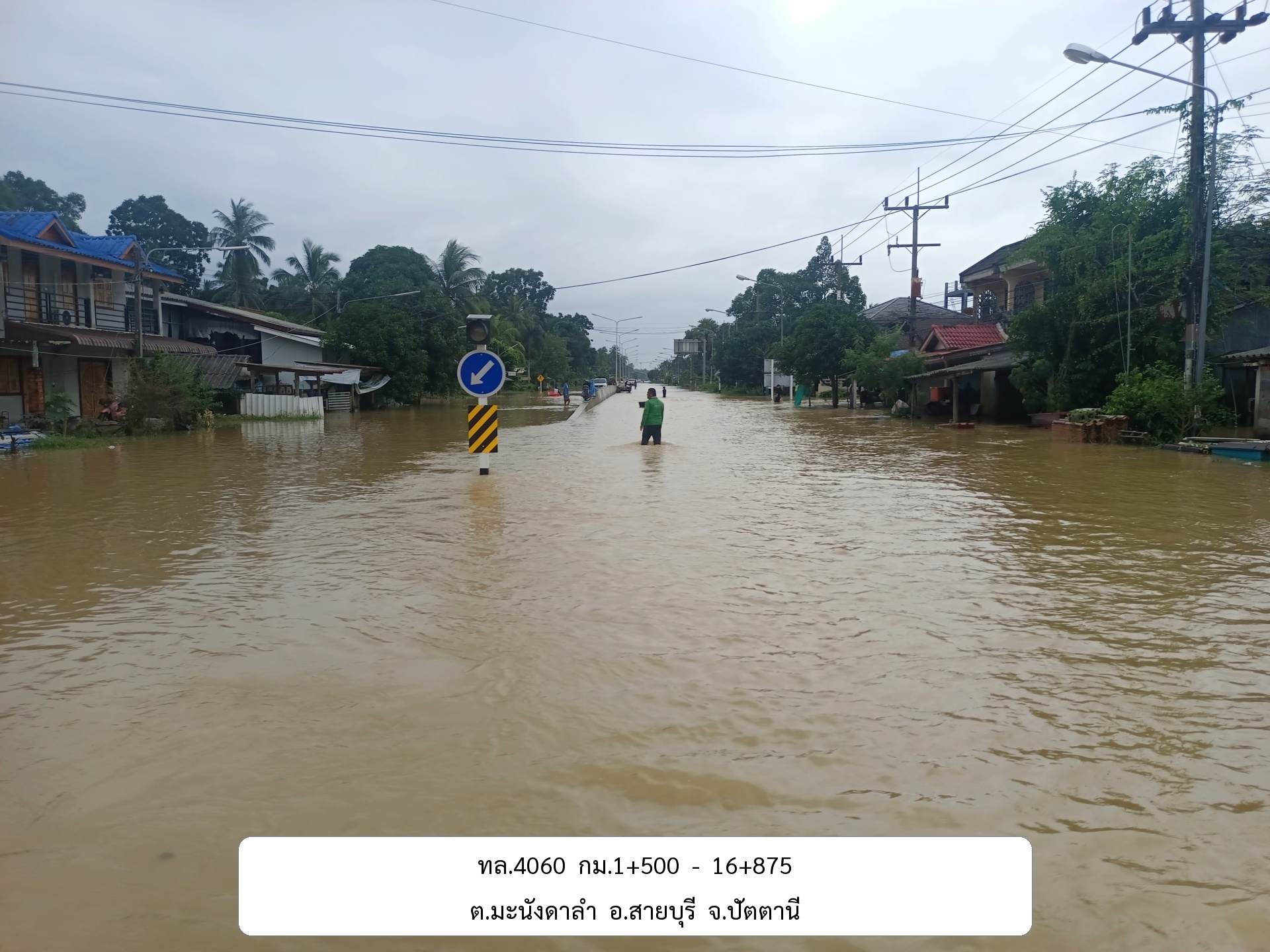 ทล.4060 สายบุรี – กะรุบี ช่วง กม.ที่ 1+500 - 16+875 อ.สายบุรี ระดับน้ำ 40 ซม.
