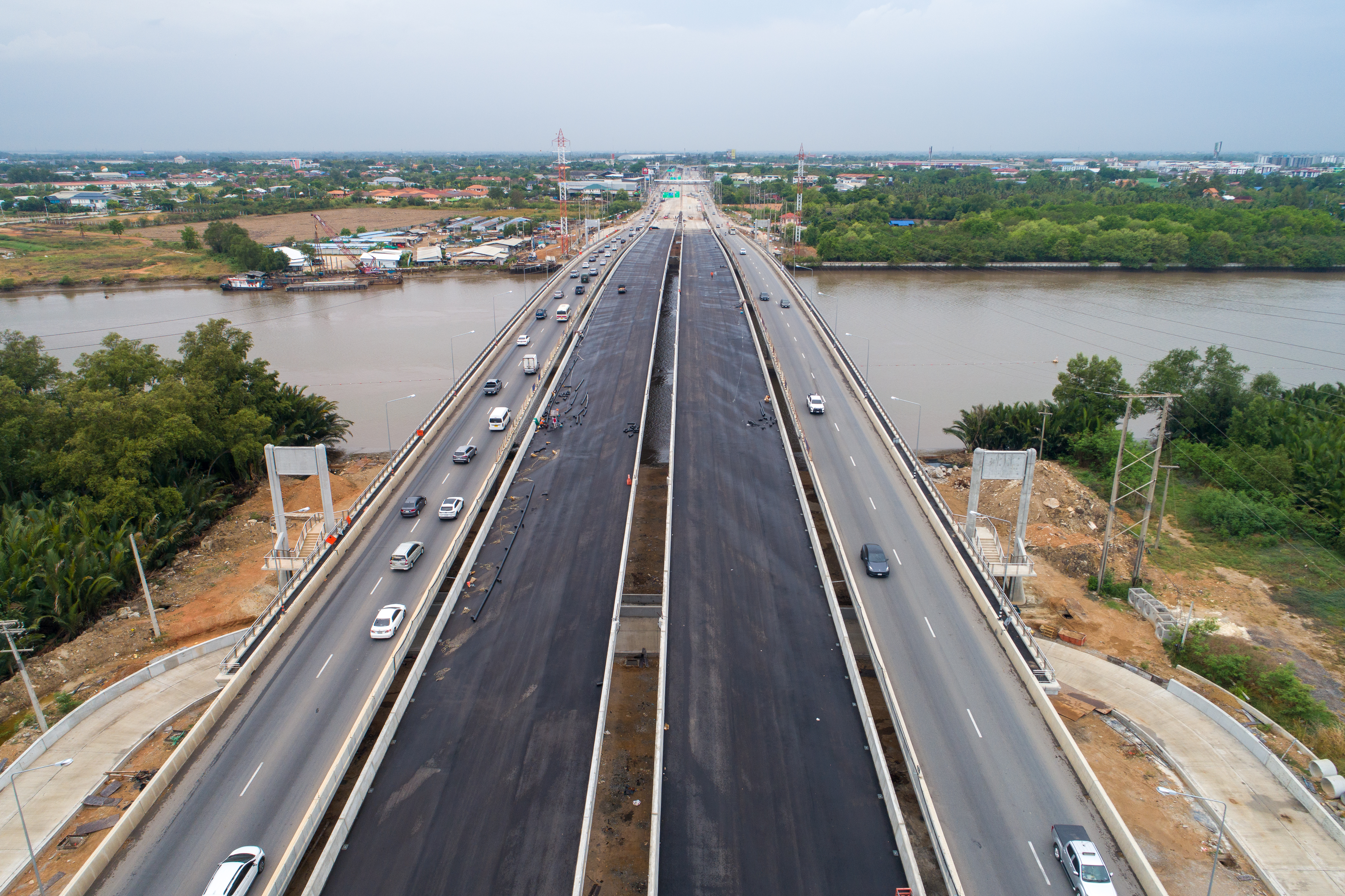 นายอภิรัฐ ไชยวงศ์น้อย อธิบดีกรมทางหลวง เปิดเผยว่า โครงการก่อสร้างสายทางเลี่ยงเมืองฉะเชิงเทราด้านใต้ (สะพานข้ามแม่น้ำบางปะกง) พื้นที่ อ.เมือง จ.ฉะเชิงเทรา นับเป็นโครงการที่มีความสำคัญอย่างยิ่งต่อการพัฒนาโครงข่ายคมนาคมในพื้นที่จังหวัดฉะเชิงเทราและภาคตะวันออก ปัจจุบันสภาพการจราจรบนทางหลวงหมายเลข 365 สายทางเลี่ยงเมืองฉะเชิงเทรา มีปริมาณ 80,000 คันต่อวัน เป็นรถบรรทุก 30% เดิมมีขนาด 4 ช่องจราจร (ไป - กลับ) ต่อมากรมทางหลวงได้ทำการก่อสร้างขยายทางหลวงเป็นขนาด 10 ช่องจราจร (ไป - กลับ) แต่สะพานข้ามแม่น้ำบางปะกงยังมีแค่ 4 ช่องจราจร ส่งผลให้เกิดจุดคอขวดที่บริเวณทางขึ้นลงสะพาน การจราจรติดขัดอย่างมาก โดยเฉพาะในช่วงเวลาเร่งด่วน รถติดสะสมเป็นทางยาว ทำให้ผู้ใช้ทางต้องเสียเวลาในการเดินทางมากขึ้นหลายเท่าตัว ประชาชนไม่ได้รับความสะดวกในการเดินทางและการขนส่งสินค้า เพิ่มต้นทุนโลจิสติกส์ และเพิ่มมลพิษทางอากาศ ซึ่งส่งผลเสียต่อสุขภาพของประชาชนที่อาศัยอยู่ในพื้นที่ ด้วยความสำคัญนี้ กรมทางหลวง โดยสำนักก่อสร้างสะพาน จึงได้ดำเนินการโครงการฯ เพื่อแก้ไขปัญหาจราจรติดขัดในตัวเมือง เชื่อมโยงโครงข่ายทางหลวงสายสำคัญ พร้อมทั้งสนับสนุนการเดินทางและการขนส่งสินค้าให้มีความคล่องตัวมากยิ่งขึ้น ซึ่งจะช่วยเสริมศักยภาพด้านโลจิสติกส์ของประเทศ ลดระยะเวลาเดินทางในตัวเมืองฉะเชิงเทราและจังหวัดใกล้เคียง ยกระดับคุณภาพชีวิต สนับสนุนการค้าการลงทุนใน EEC โดยมีลักษณะ การก่อสร้างงานโยธาดังนี้