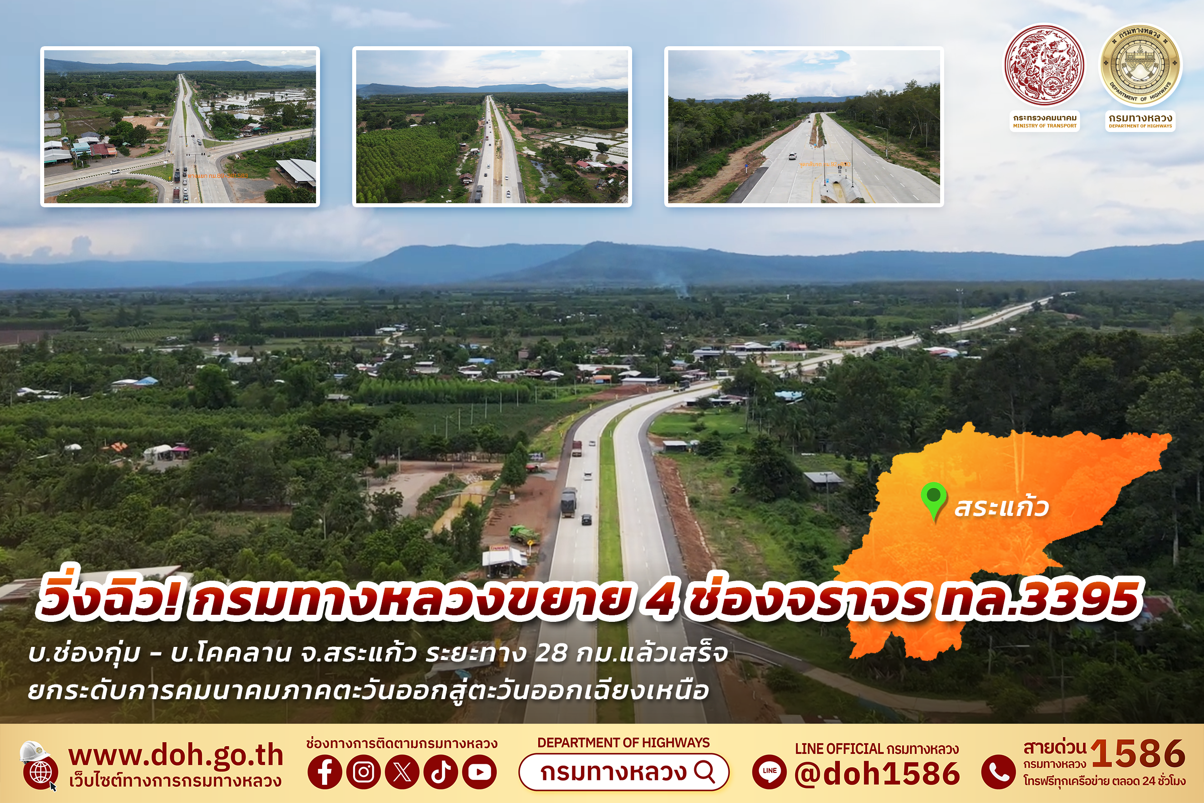 กรมทางหลวงจึงขอเน้นย้ำถึงความมุ่งมั่นอย่างไม่หยุดยั้งในการพัฒนาโครงข่ายคมนาคมขนส่งของประเทศให้มีมาตรฐานสูงสุด เพื่ออำนวยความสะดวกและยกระดับคุณภาพชีวิตของประชาชน รวมถึงเสริมสร้างศักยภาพการแข่งขันของประเทศให้แข็งแกร่งและยั่งยืนสืบไป