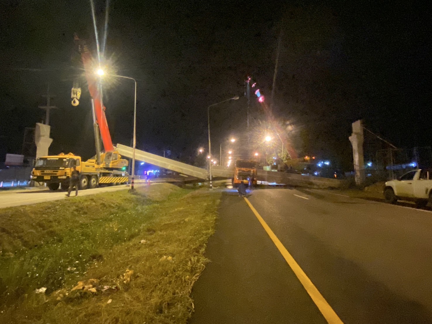 นายอภิรัฐ ไชยวงศ์น้อย อธิบดีกรมทางหลวง เปิดเผยถึงอุบัติเหตุจากการยกติดตั้งคานสะพานลอยในทางหลวงหมายเลข 317 ตอน หน้าค่าย ตชด. - พังงอน ที่ กม.10+100 (บริเวณ บ.นาไทร) ว่า ขณะนี้ได้สั่งการทุกหน่วยงานที่เกี่ยวข้องเข้าลงพื้นที่เพื่อตรวจสอบ และเร่งจัดการพื้นที่เพื่อให้เข้าสู่สภาวะปกติโดยเร็ว