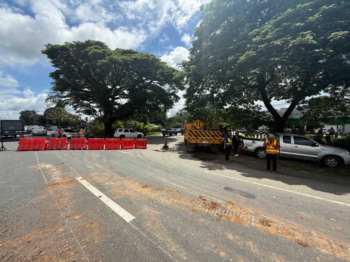 โดยล่าสุด ได้มีการปิดจราจรถนนสายหลักทั้งขาเข้า จ. จันทบุรี และขาออก ไปยัง จ.สระแก้ว และเปิดใช้ทางเบี่ยง โดยเจ้าหน้าที่แขวงทางหลวงจันทบุรี และเจ้าหน้าที่ตำรวจในพื้นที่ ร่วมกันอำนวยความสะดวกแก่ประชาชนตลอดเวลาเนื่องจากขณะนี้ในพื้นที่ เกิดฝนตกหนัก เป็นอุปสรรคการทำงานของเจ้าหน้าที่ที่กำลังปฏิบัติงานคาดว่าภายในวันนี้จะแล้วเสร็จ เพื่อให้การจราจรกลับสู่ภาวะปกติ