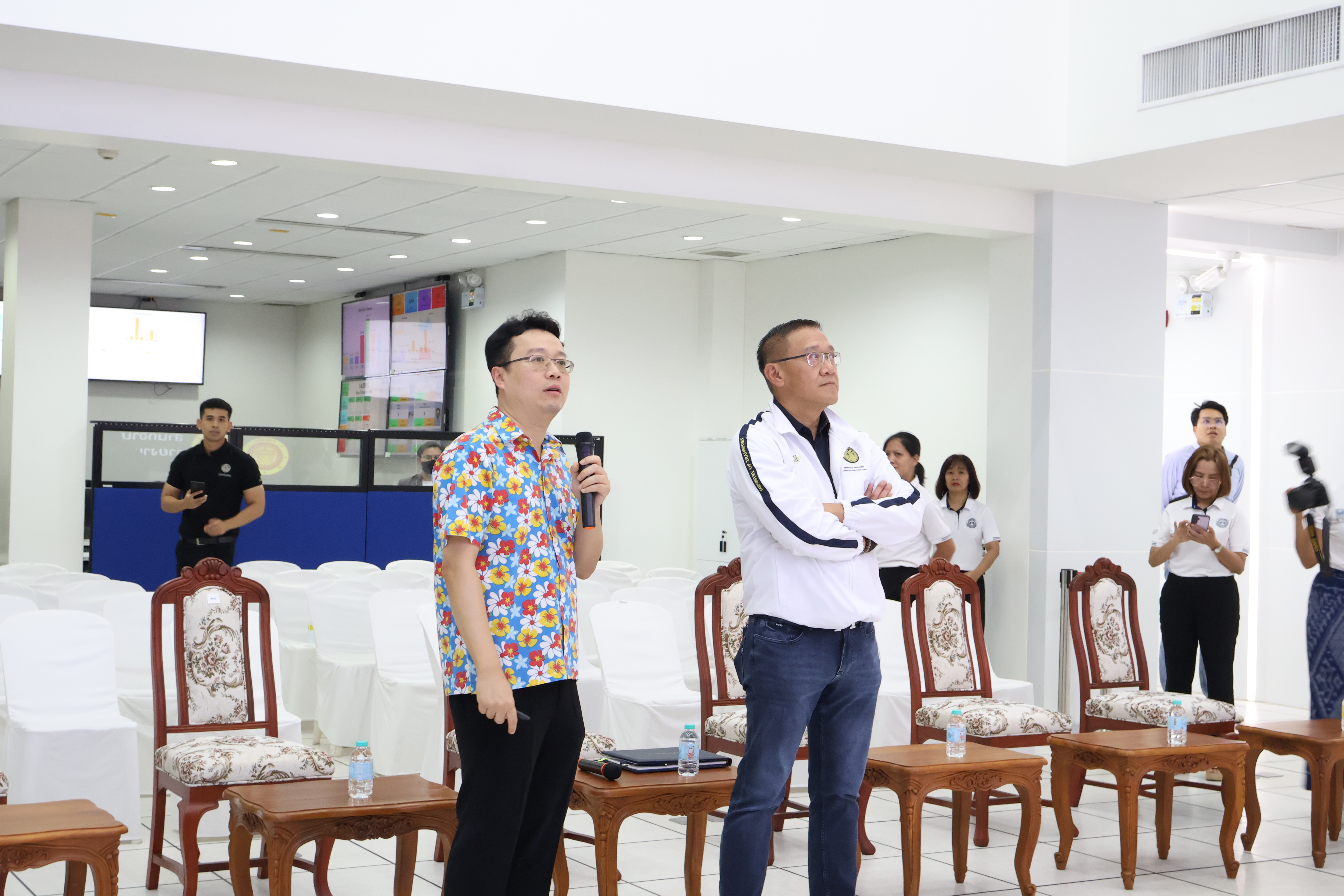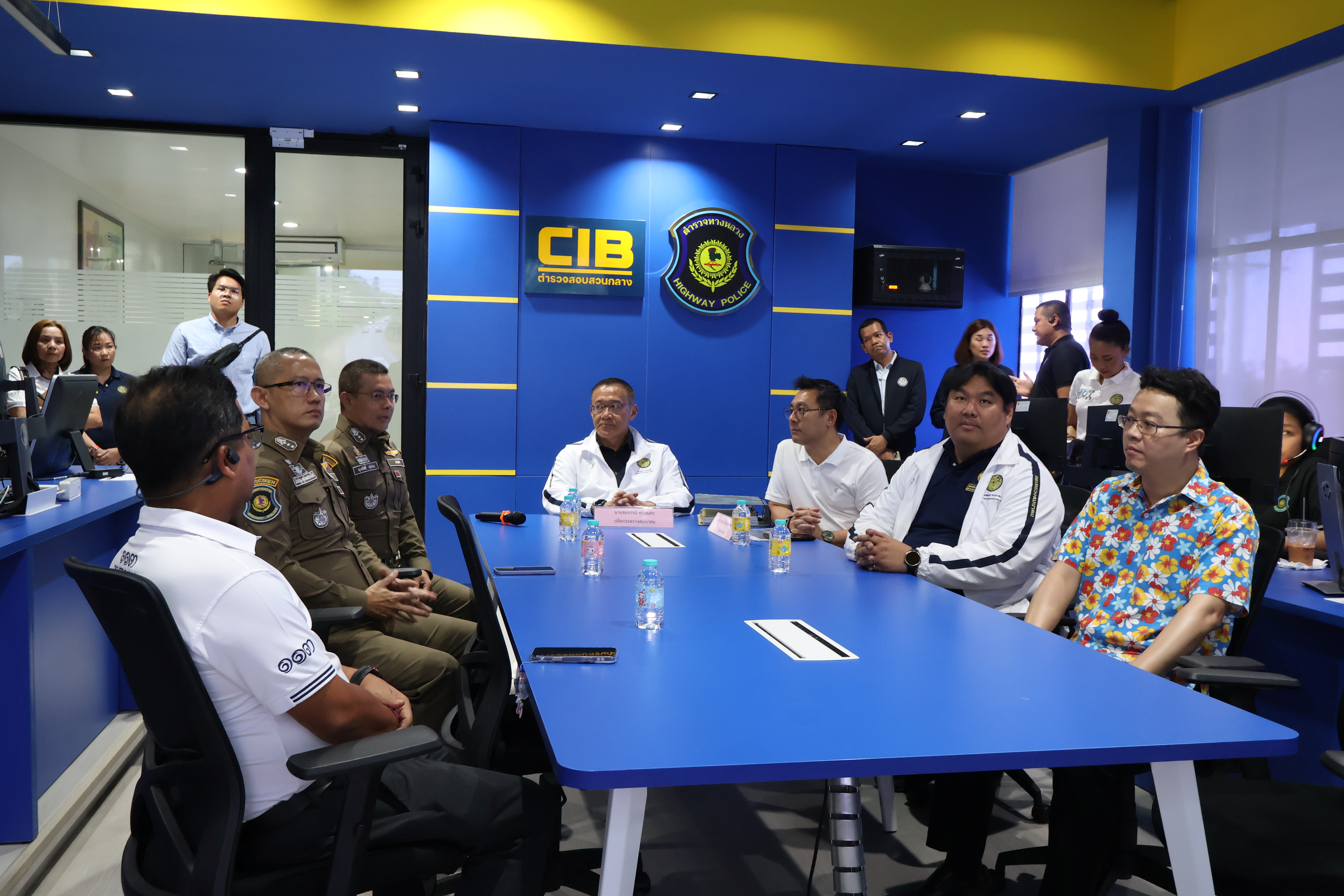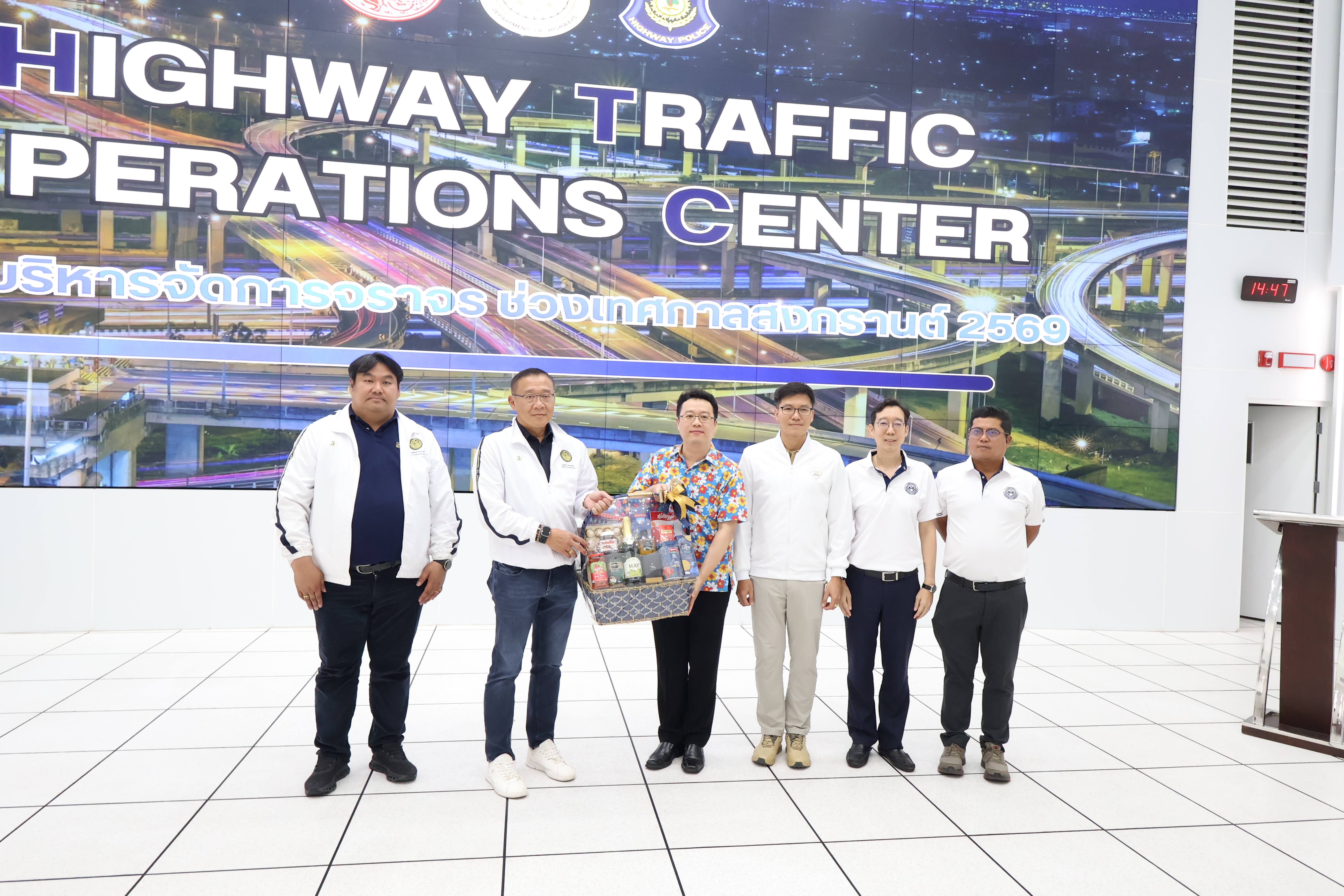 จากนั้น คณะฯ ได้เดินทางไปตรวจเยี่ยมศูนย์ควบคุมสั่งการจราจร กองบังคับการตำรวจทางหลวง โดยบูรณาการการทำงานร่วมกับตำรวจทางหลวงในการดูแลความปลอดภัยตลอด 24 ชั่วโมง ในการนี้ มี พ.ต.อ.พิชญ์รุจ กุลวิมลประทีป รองผู้บังคับการตำรวจทางหลวง ให้การต้อนรับ และ พ.ต.อ.สุขสวัสดิ์ คูสิทธิผล รองผู้บังคับการตำรวจทางหลวง เป็นผู้รายงานภาพรวมการบริหารจัดการจราจร และมาตรการอำนวยความสะดวกแก่ประชาชน