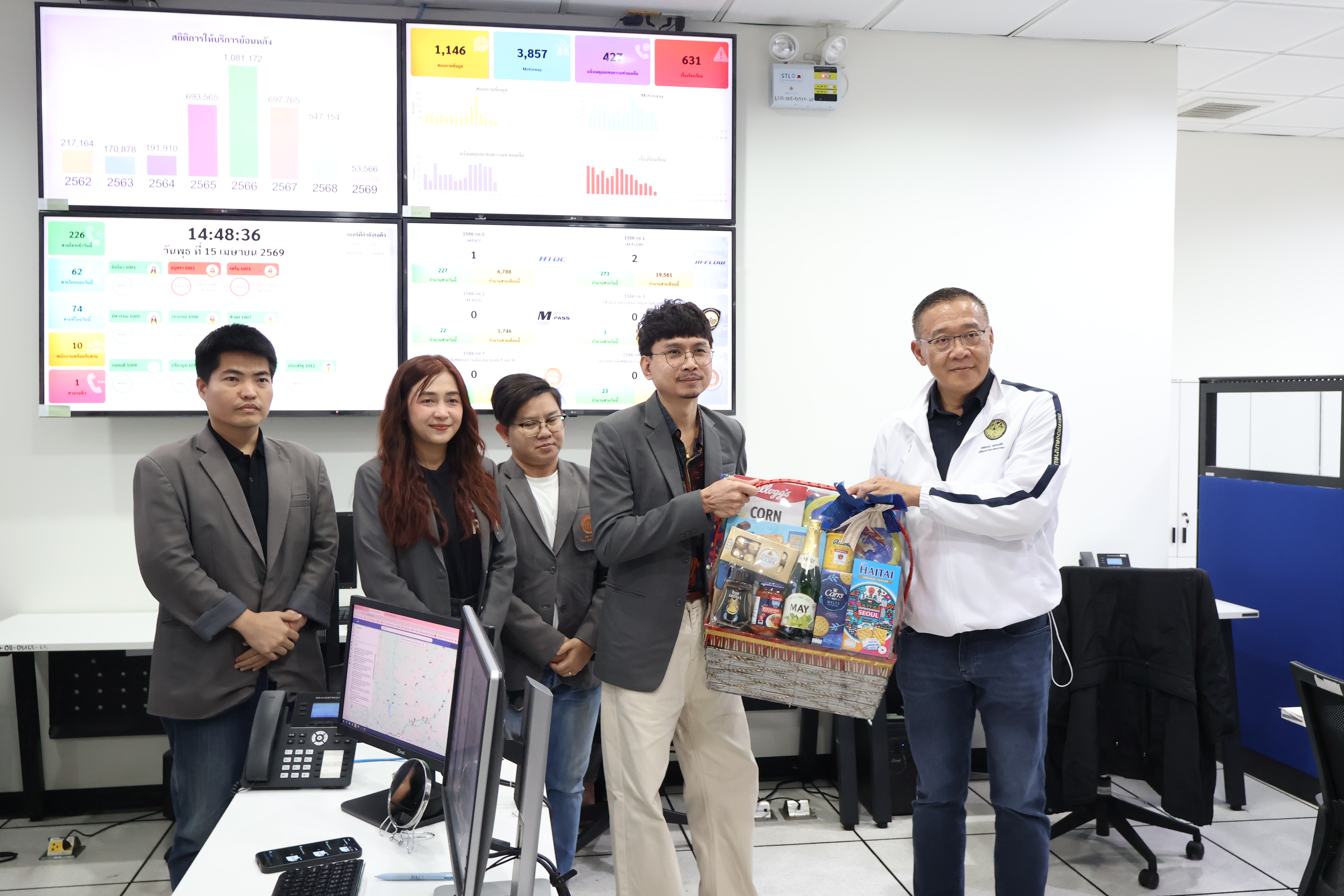 นายชยธรรม์ พรหมศร ปลัดกระทรวงคมนาคม พร้อมด้วย นายทรงยศินทร์ ชนปทาธิป ผู้ตรวจราชการกระทรวงคมนาคม ลงพื้นที่ตรวจเยี่ยมและรับฟังการบรรยายสรุปสภาพการจราจร รวมทั้งตรวจความพร้อมในการอำนวยความสะดวกและความปลอดภัย รองรับการเดินทางกลับเข้าสู่กรุงเทพมหานครของประชาชนภายหลังเทศกาลสงกรานต์ 2569 โดยมี นายปิยพงษ์ จิวัฒนกุลไพศาล อธิบดีกรมทางหลวง นายพงษ์พันธ์ จั่นเงิน รองอธิบดีฝ่ายวิชาการ ผู้บริหารและเจ้าหน้าที่กรมทางหลวงให้การต้อนรับ พร้อมนี้ได้มอบกระเช้าเพื่อเป็นกำลังใจแก่เจ้าหน้าที่ ณ ศูนย์บริหารจัดการจราจรและอุบัติเหตุ (Highway Traffic Operation Center: HTOC) กรมทางหลวง ซึ่งเป็นศูนย์กลางในการรวบรวมข้อมูลจราจรแบบเรียลไทม์จากทั่วประเทศ พร้อมติดตามสถานการณ์บนโครงข่ายทางหลวงอย่างใกล้ชิด เพื่อประสานงานแก้ไขปัญหาจุดชะลอตัวได้อย่างทันท่วงที