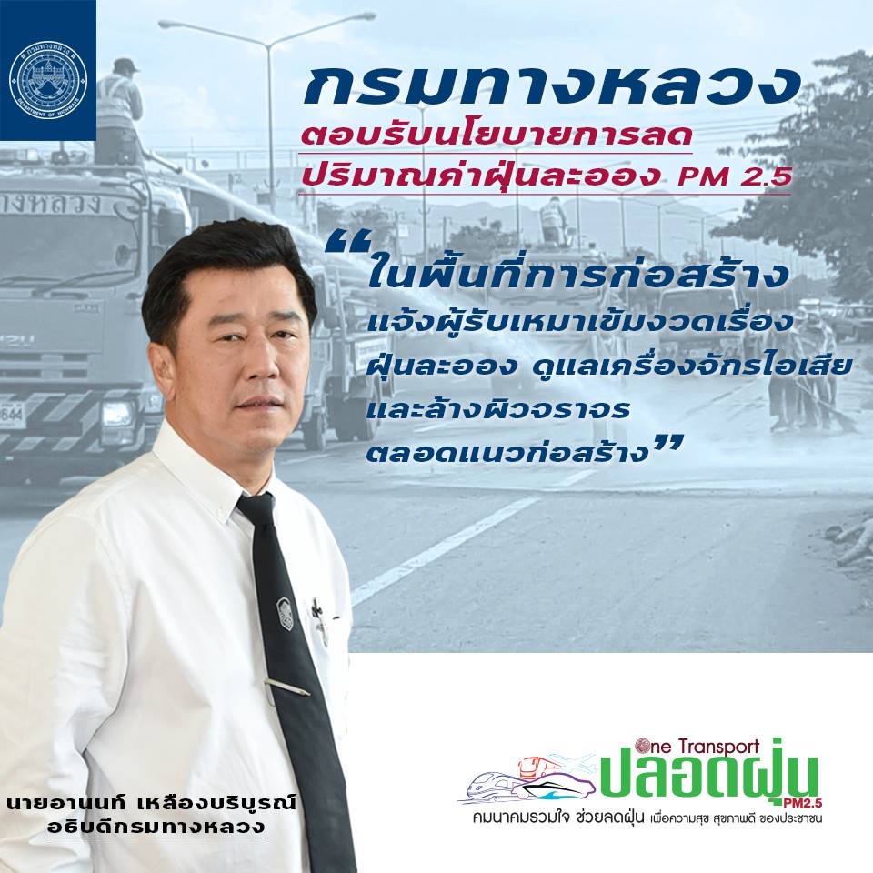 กรมทางหลวง ออกมาตรการป้องกันและแก้ไขปัญหาฝุ่นละอองขนาดเล็ก PM2.5 |