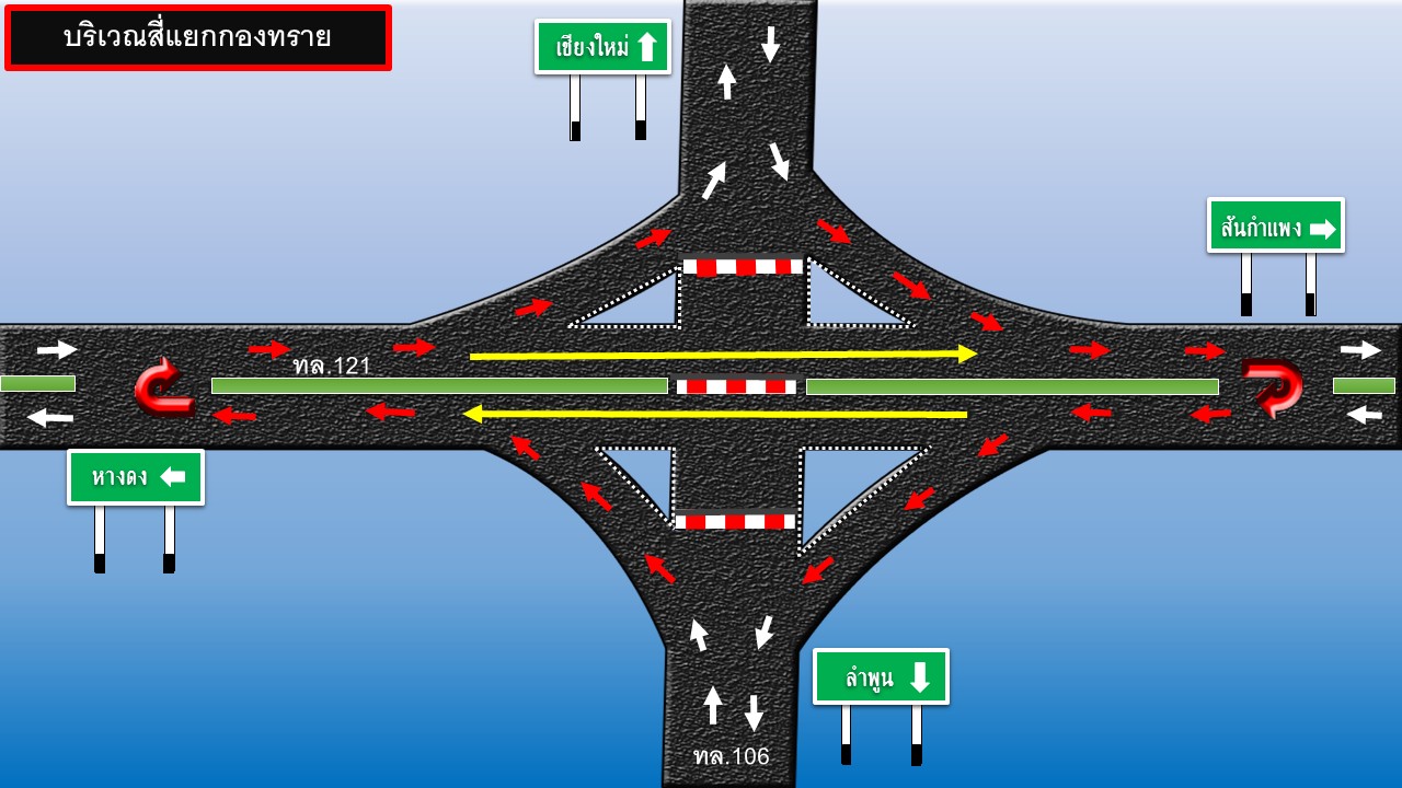 แขวงทางหลวเชียงใหม่ที่ 2 โดยหมวดทางหลวงสารภี จัดการจราจรบริเวณสี่แยกกองทราย (ทางหลวงหมายเลข 121 ตัดกับถนนสายต้นยาง)