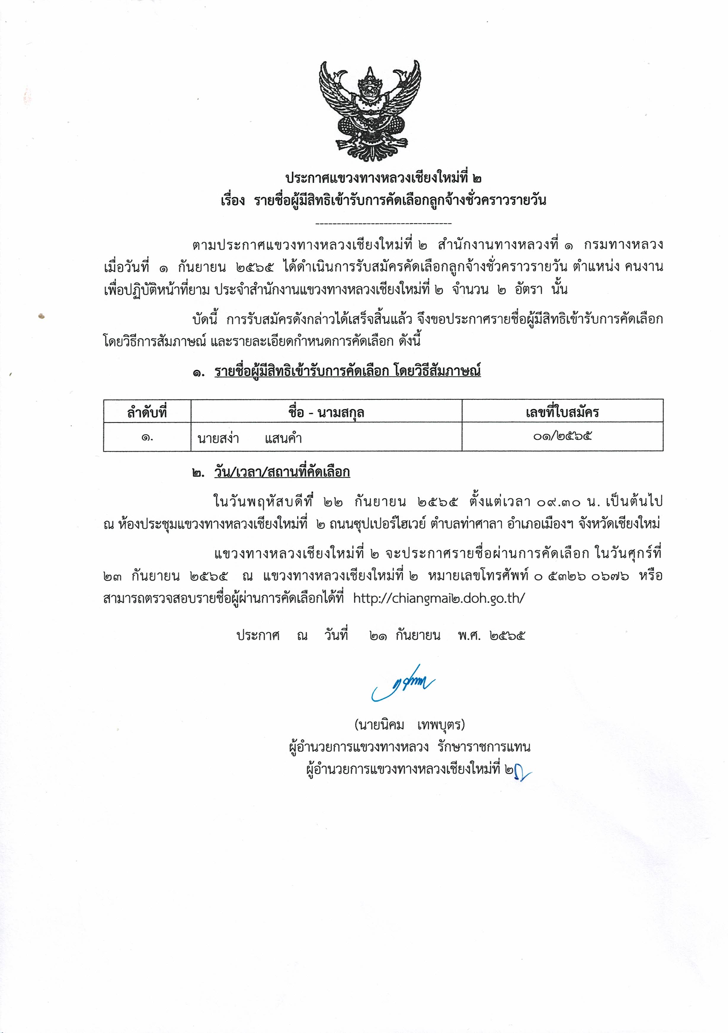 "ประกาศรายชื่อผู้มีสิทธิเข้ารับการคัดเลือกลูกจ้างชั่วคราวรายวัน"