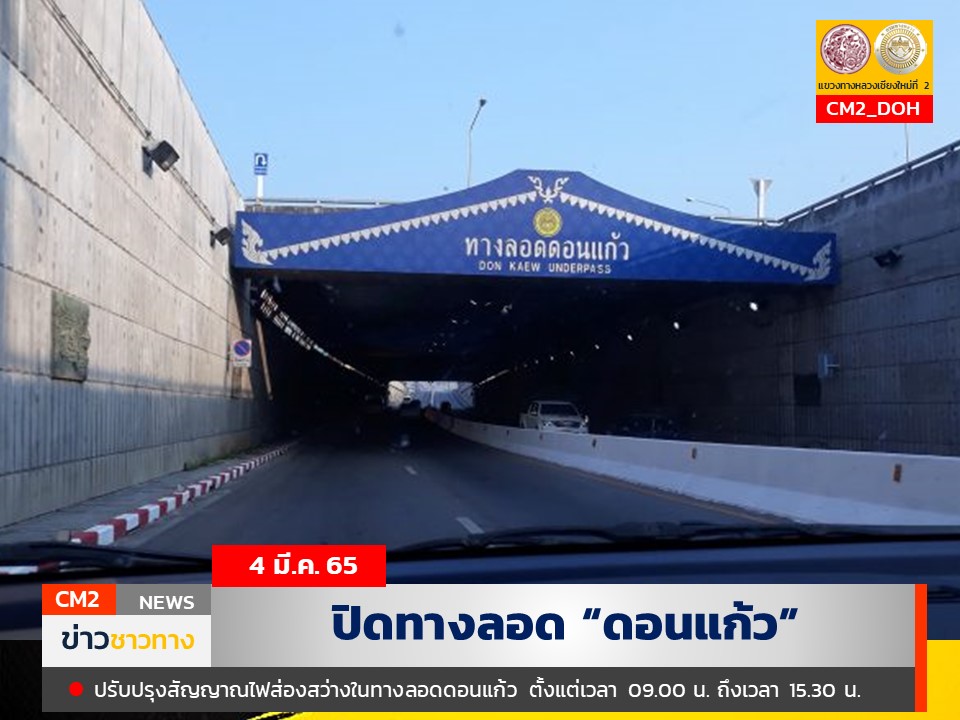 แจ้ง!! ปิดทางลอดดอนแก้ว วันที่ 4 มีนาคม 2565