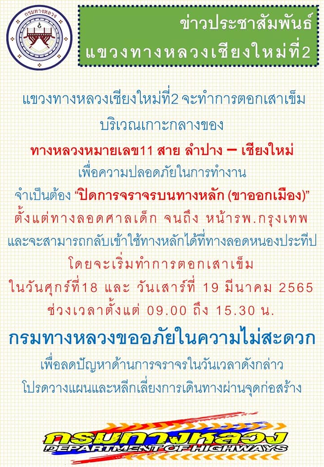 ช่องทางการติดต่อแขวงทางหลวงเชียงใหม่ที่ 2