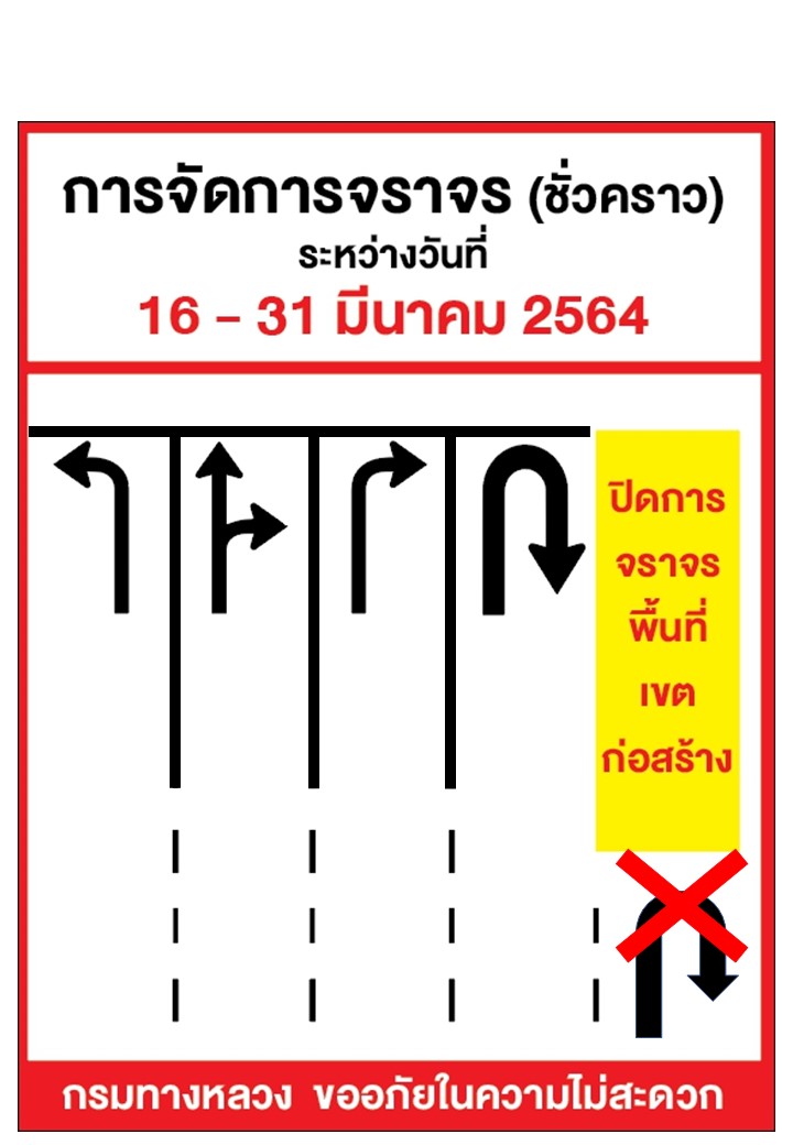 ณ โอกาสนี้ และขอให้ประชาชนใช้เส้นทางอย่างระมัดระวัง หรือหลีกเลี่ยงการใช้เส้นทางในวันดังกล่าว รวมทั้ง ขอความร่วมมือผู้ใช้เส้นทางปฏิบัติตามป้ายเตือน ป้ายแนะนำทางเลี่ยง ป้ายเสริมจากโครงการ และสัญญาณจราจรที่ติดตั้งไว้ เพื่อประโยชน์ต่อการเดินทาง