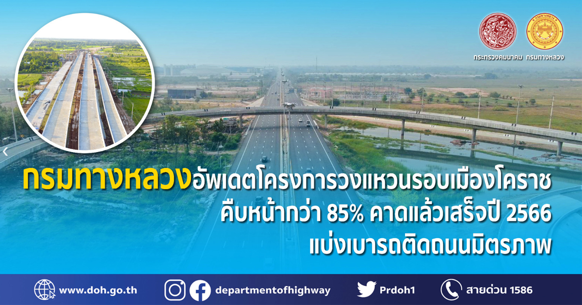ข้อมูลข่าว : กรมทางหลวงอัพเดตโครงการวงแหวนรอบเมืองโคราช คืบหน้ากว่า 85% คาดแล้วเสร็จปี 2566 แบ่งเบารถติดถนนมิตรภาพ