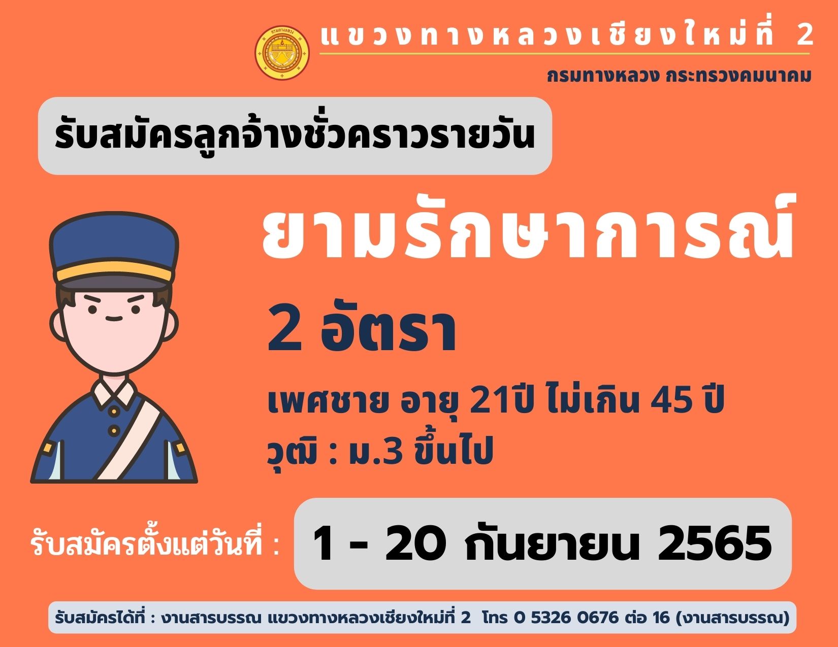 แขวงทางหลวงเชียงใหม่ที่ 2 เปิดรับสมัครสอบคัดเลือกลูกจ้างชั่วคราวรายวัน