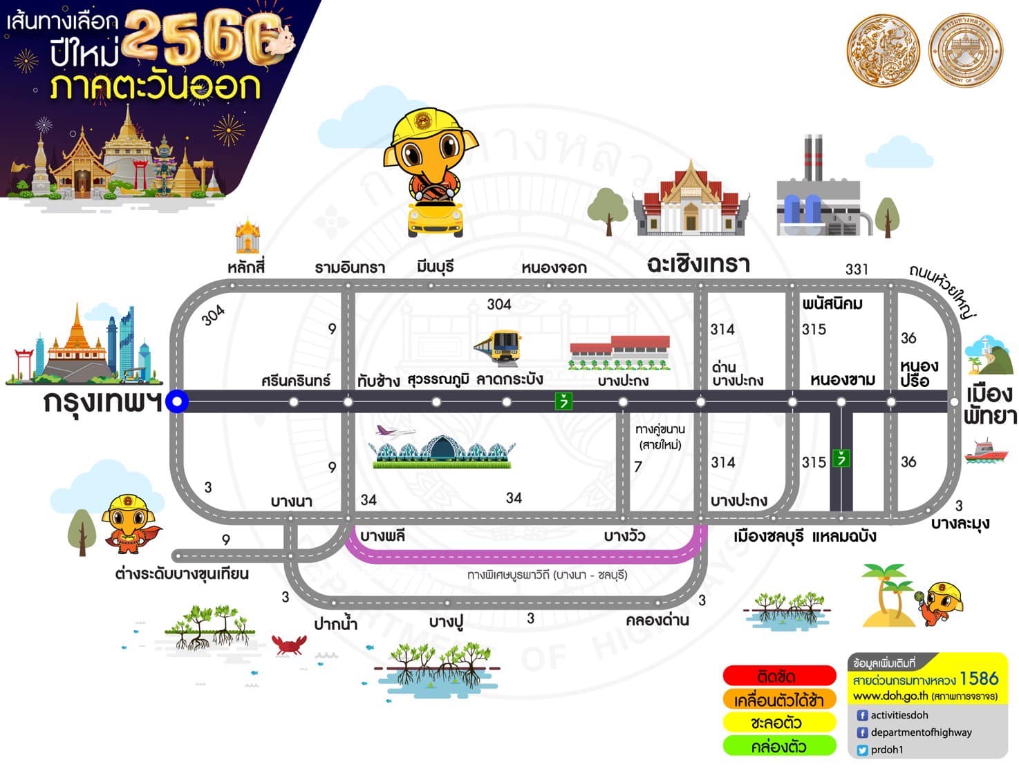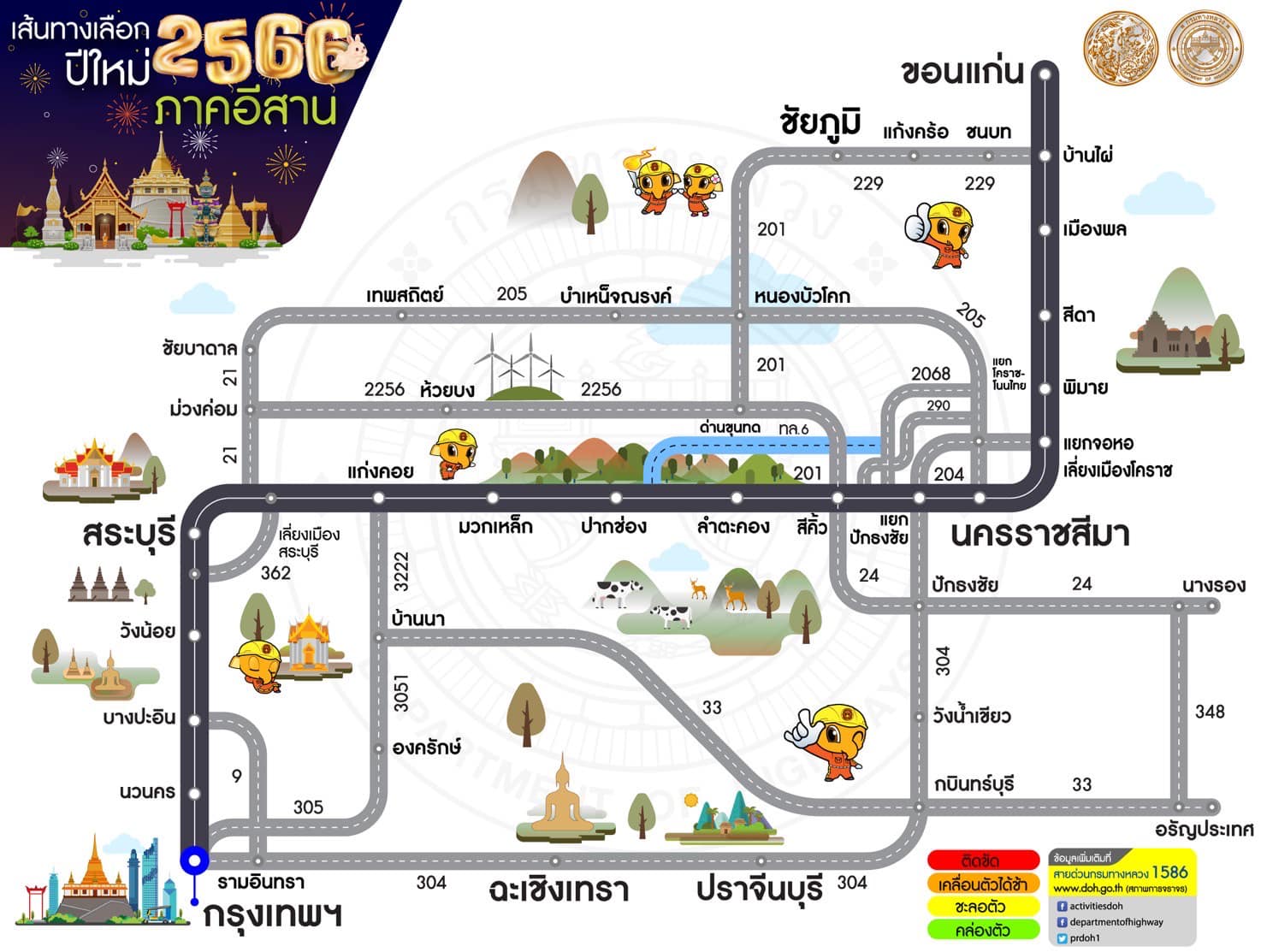 นายสราวุธ ทรงศิวิไล อธิบดีกรมทางหลวง เปิดเผยว่า ในช่วงเทศกาลปีใหม่ระหว่างวันที่ 30 ธันวาคม 2565 – 2 มกราคม 2566 เพื่อเป็นการอำนวยความสะดวกแก่ผู้เดินทางและหลีกเลี่ยงปัญหาการจราจรติดขัดในช่วงเทศกาลดังกล่าว ตามข้อสั่งการของนายศักดิ์สยาม ชิดชอบ รัฐมนตรีว่าการกระทรวงคมนาคม ที่มีความห่วงใยประชาชนในการเดินทาง กรมทางหลวงจึงได้แนะนำเส้นทางเลือกบนทางหลวงสายหลักและสายรอง ซึ่งจะช่วยให้ประชาชนวางแผนการเดินทางล่วงหน้าได้เป็นอย่างดี ดังนี้
